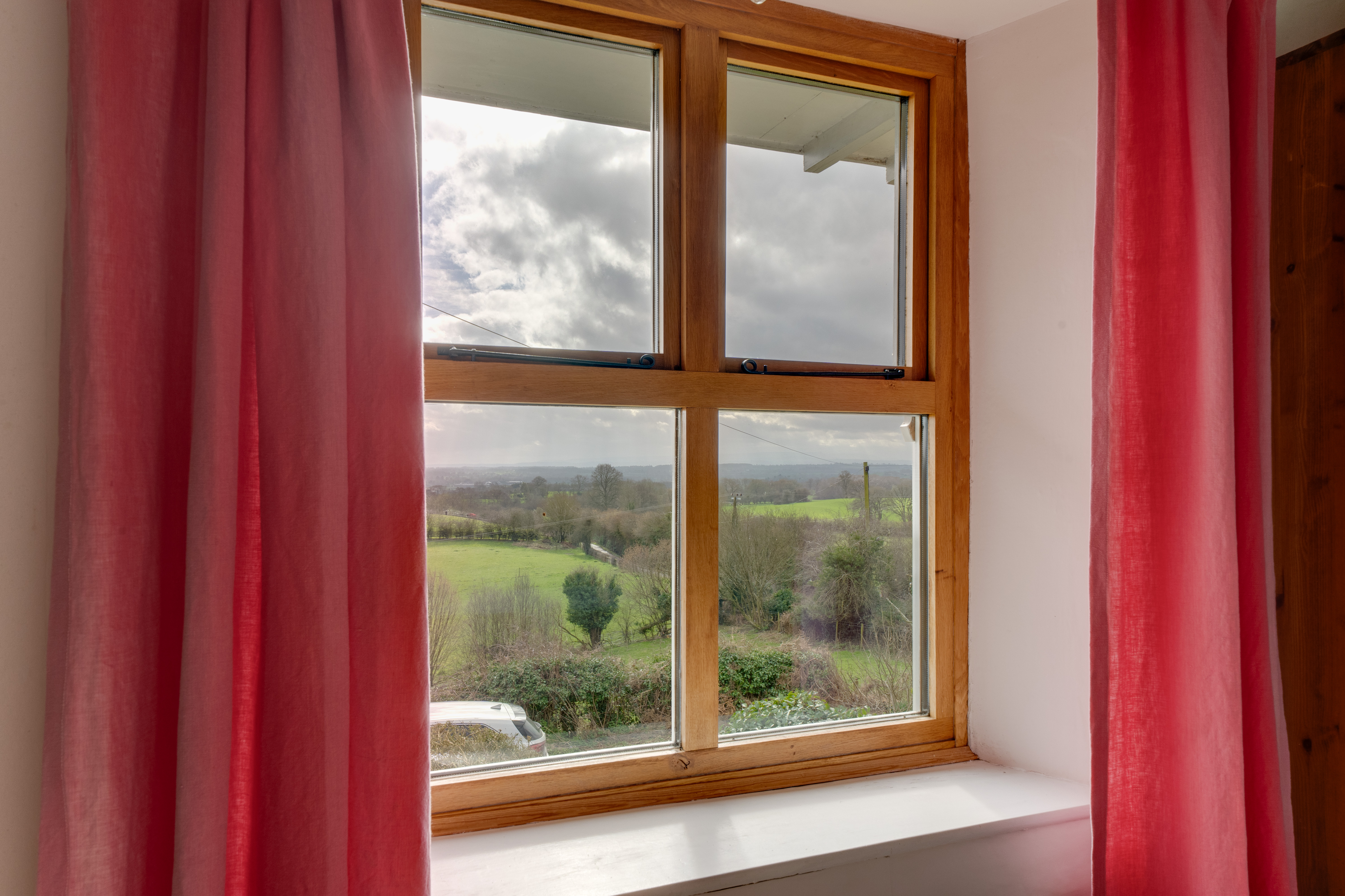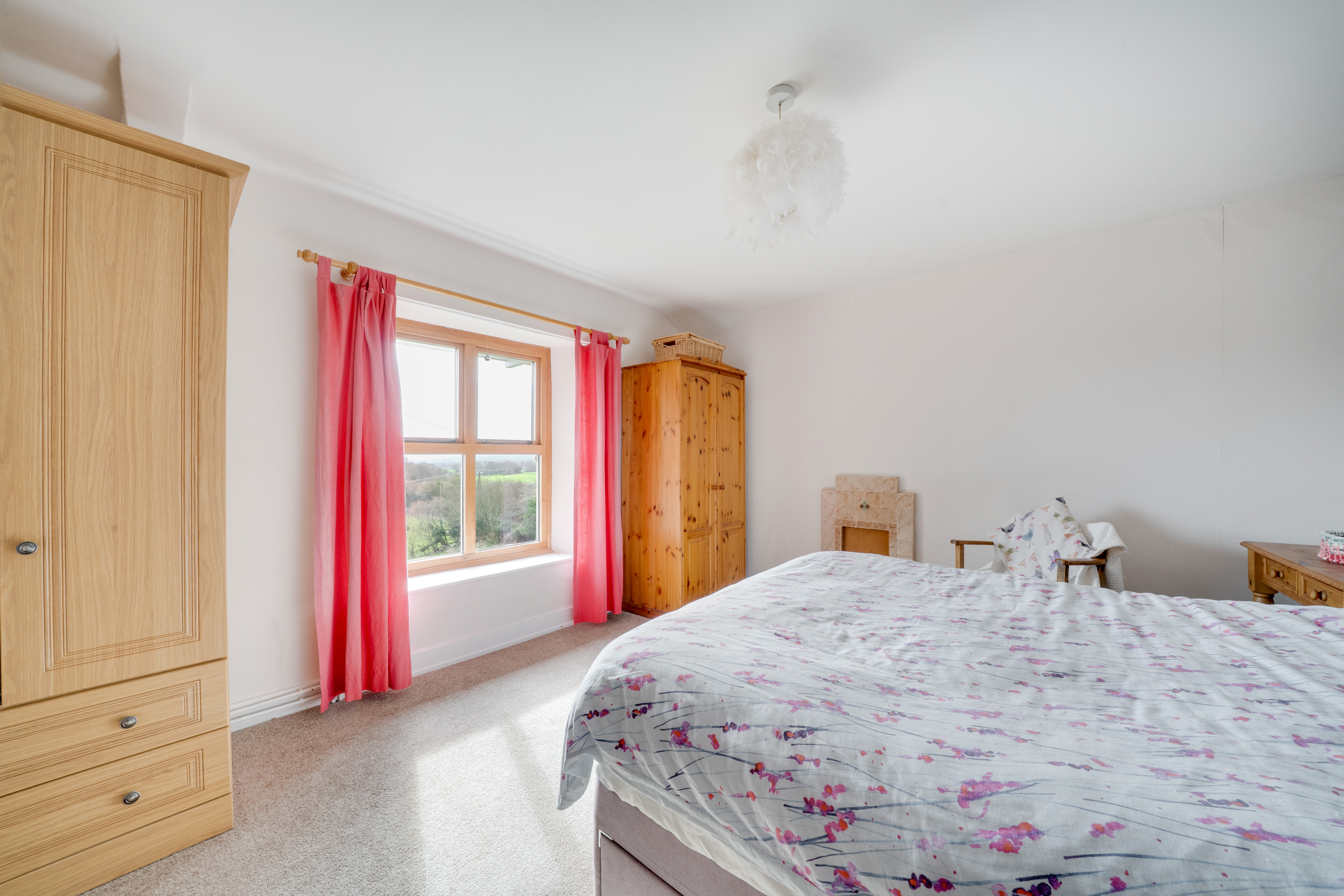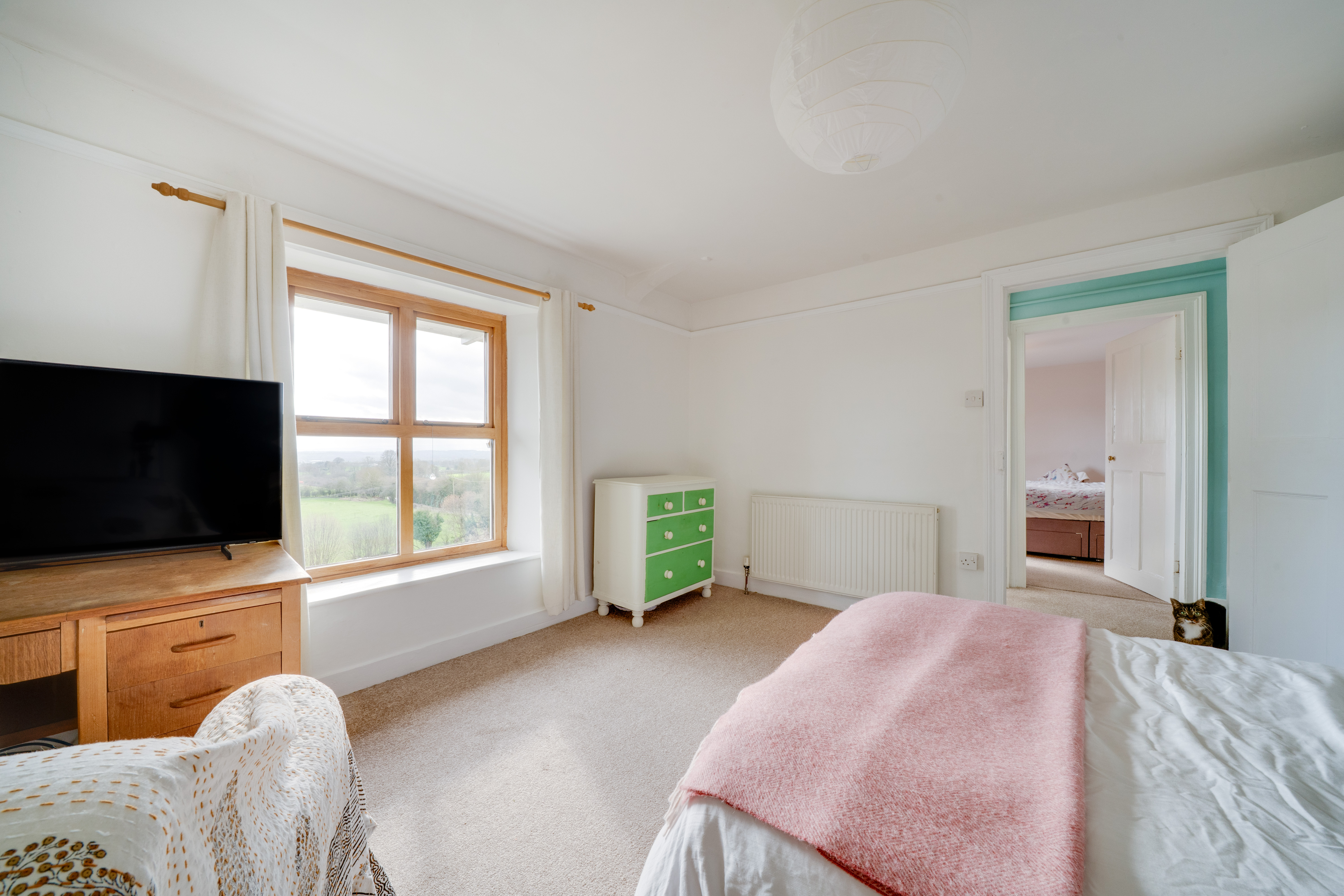 Stairs rise to the first floor landing, which leads to the bedroom accommodation. The principal bedroom enjoys a bright outlook with far-reaching countryside views, while three further bedrooms provide comfortable accommodation for family or guests. The first floor also benefits from a separate WC, providing additional convenience.