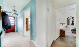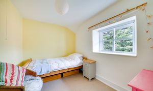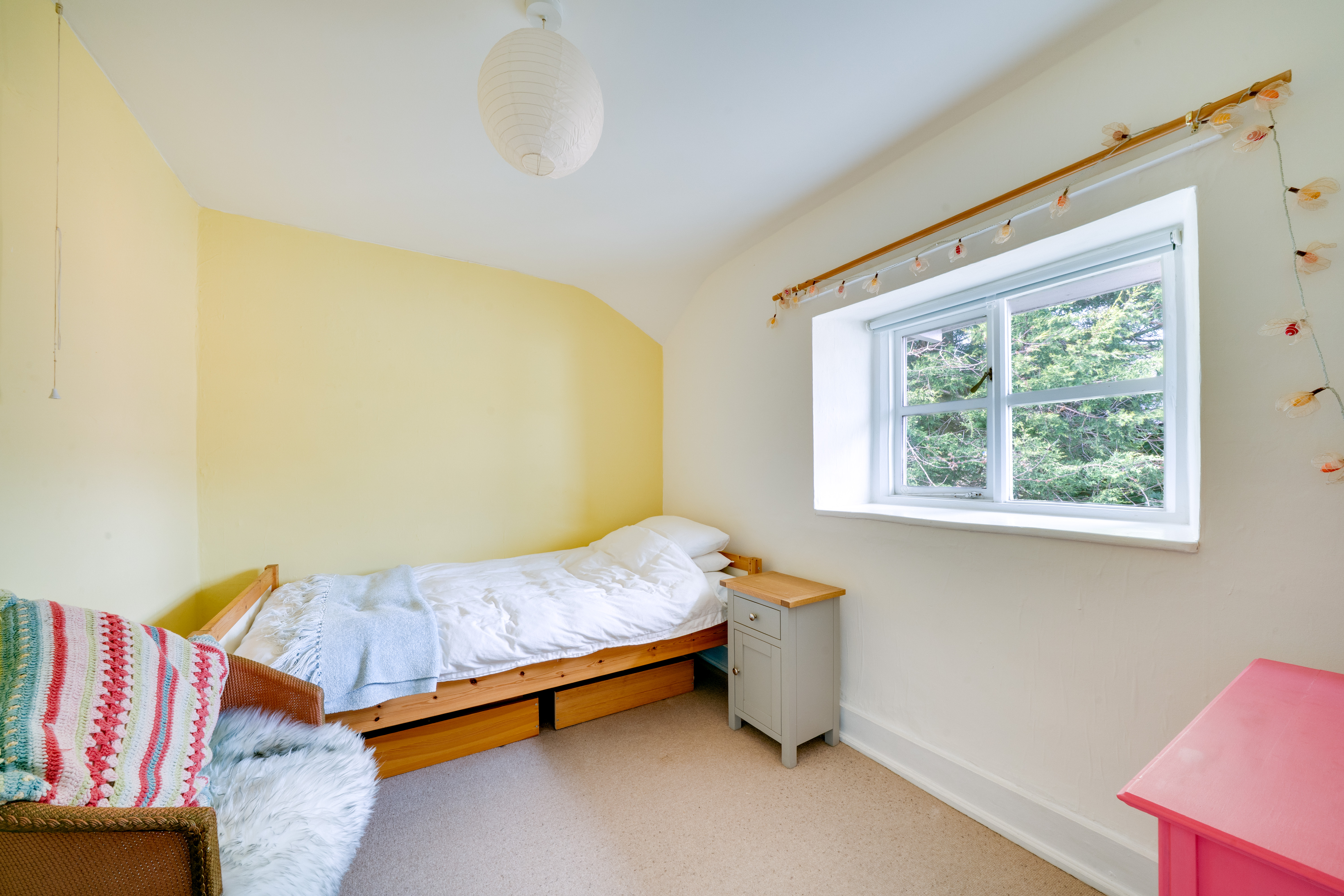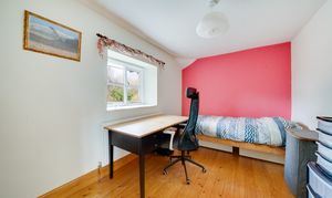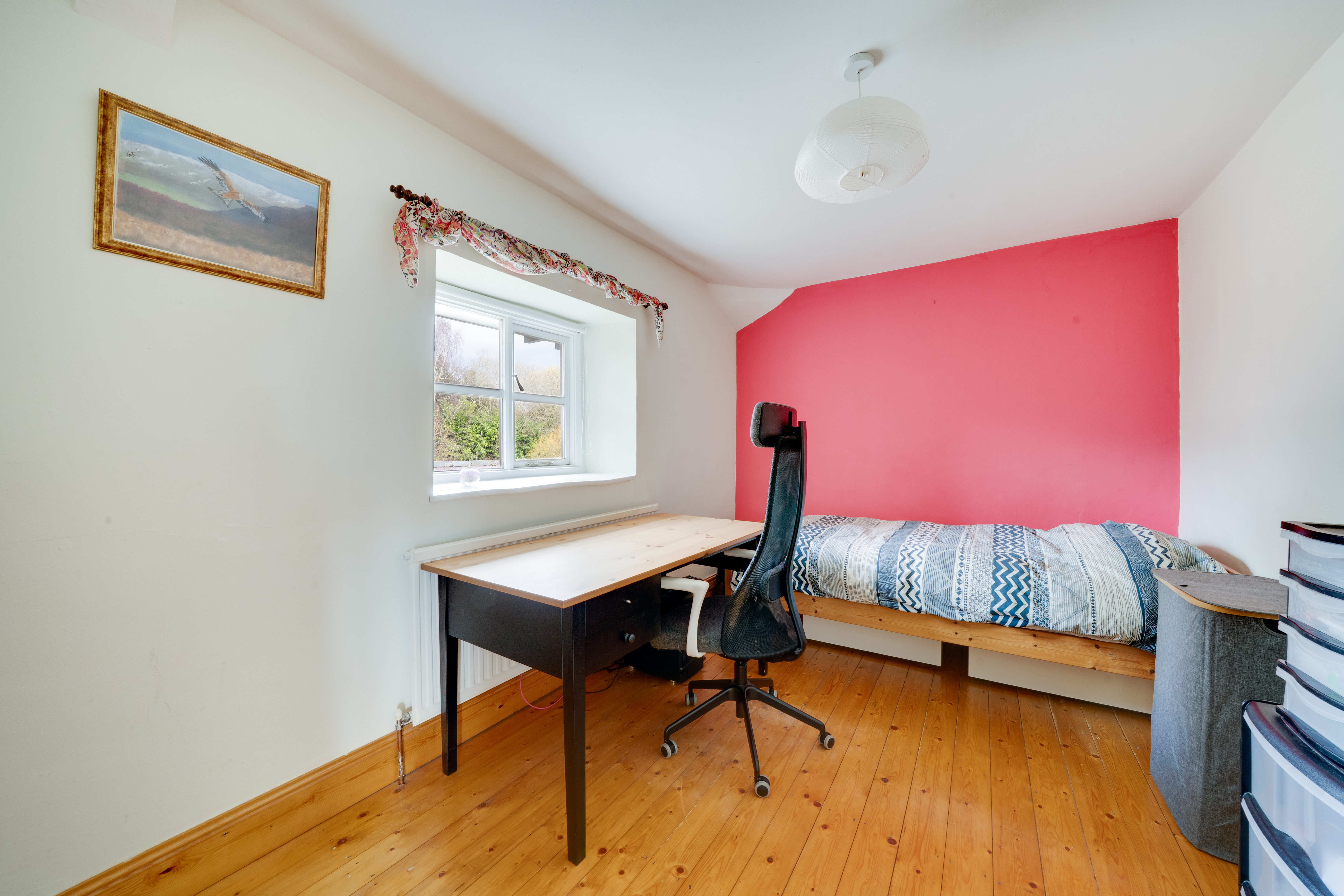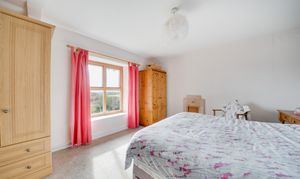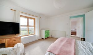 Stairs rise to the first floor landing, which leads to the bedroom accommodation. The principal bedroom enjoys a bright outlook with far-reaching countryside views, while three further bedrooms provide comfortable accommodation for family or guests. The first floor also benefits from a separate WC, providing additional convenience.