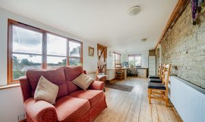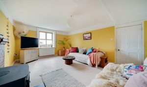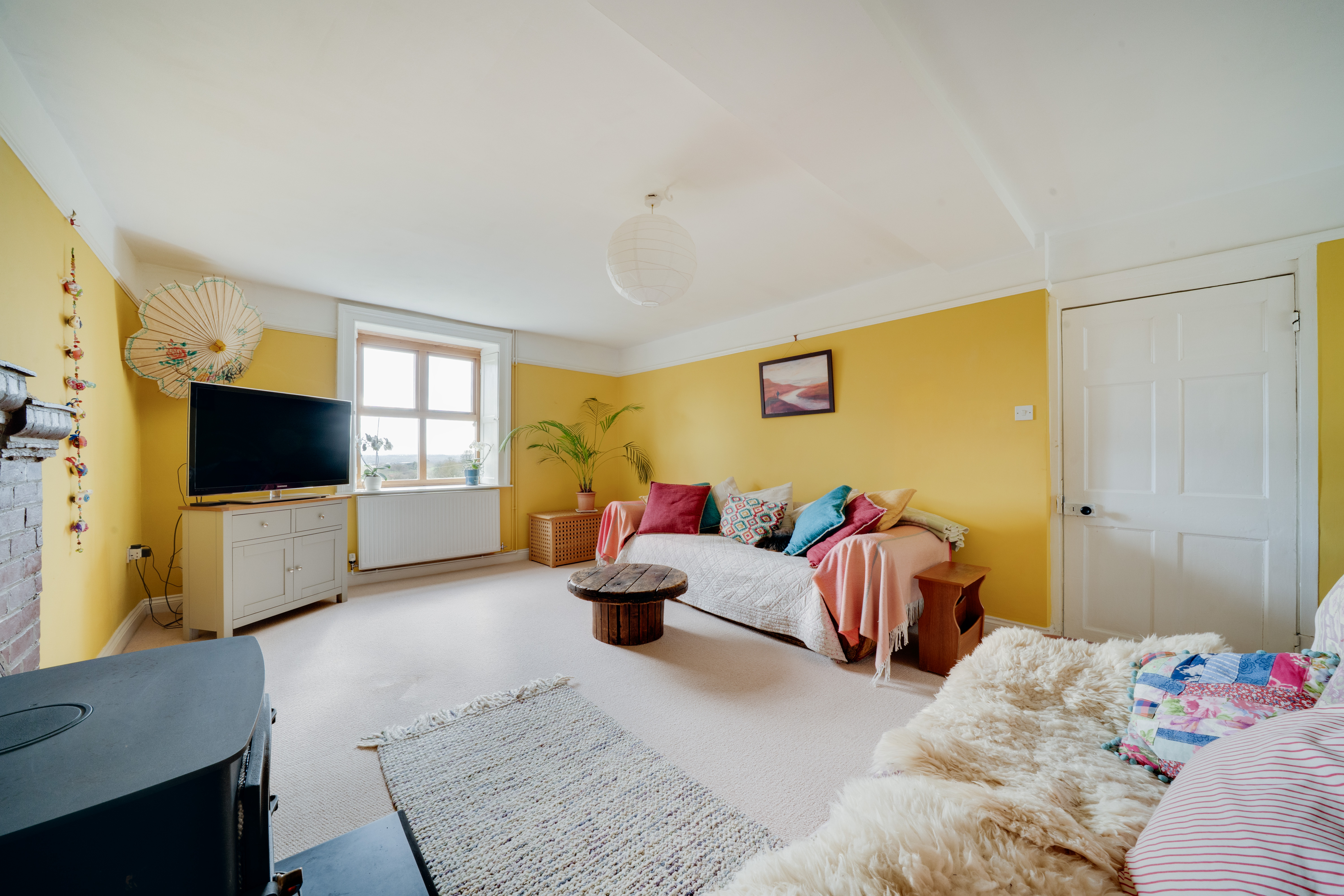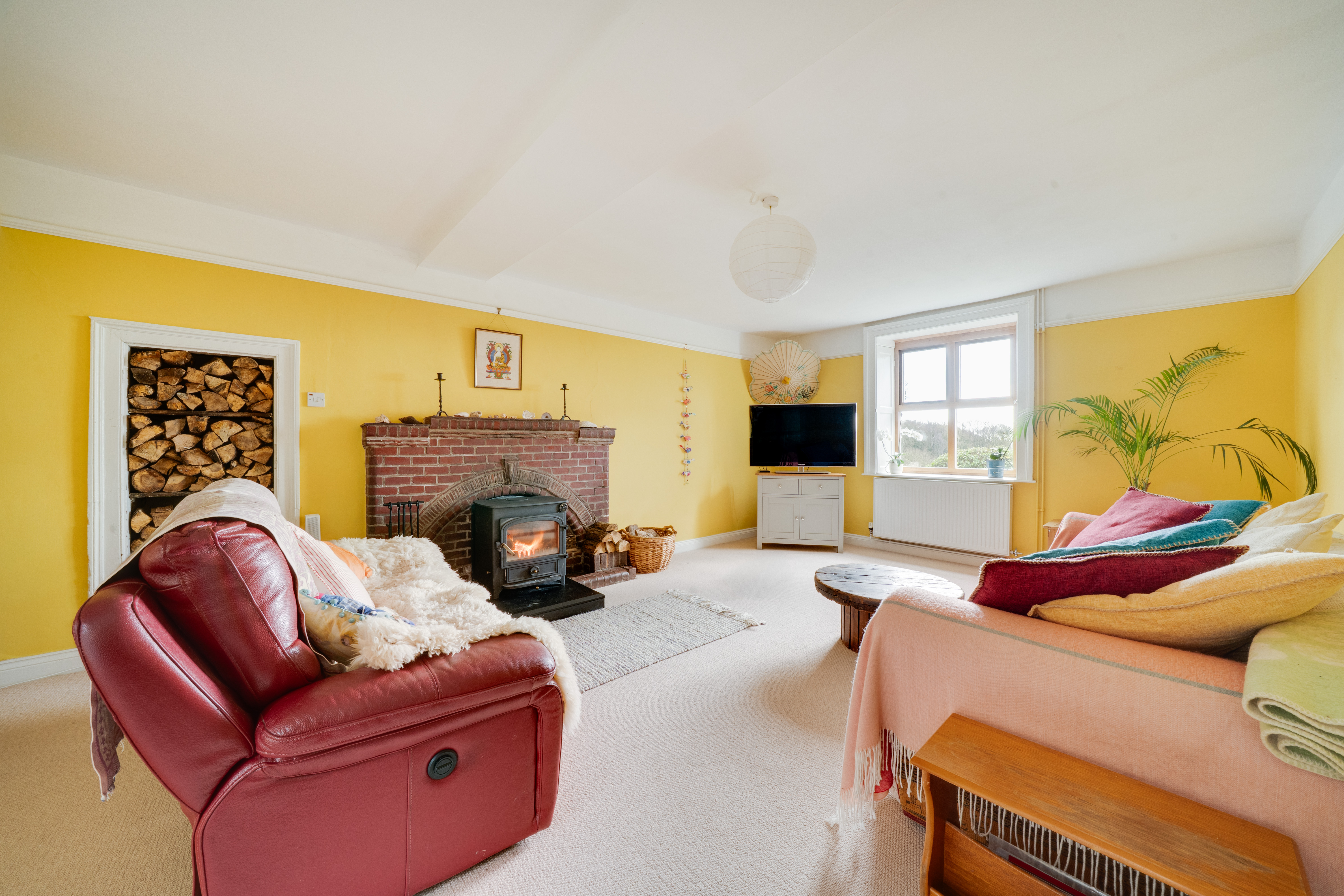 Entering the property, the entrance hall provides access to the principal ground floor accommodation and staircase rising to the first floor. The living room is a generous and welcoming reception space enjoying attractive countryside views. The room is centred around a brick fireplace fitted with a Clearview wood-burning stove, creating a warm focal point and a cosy atmosphere. A second reception room offers additional flexibility and could serve equally well as a snug, sitting room or study.