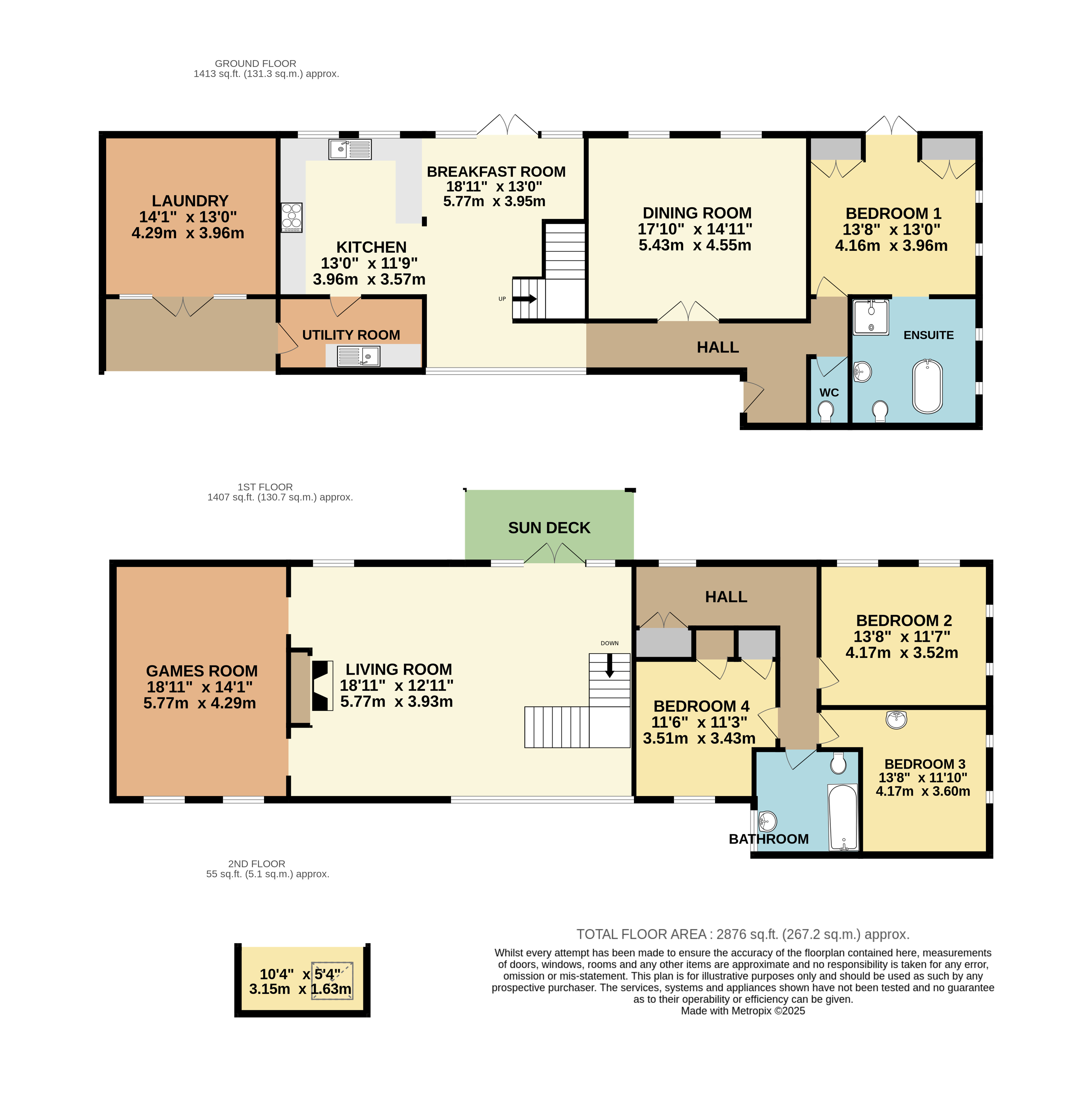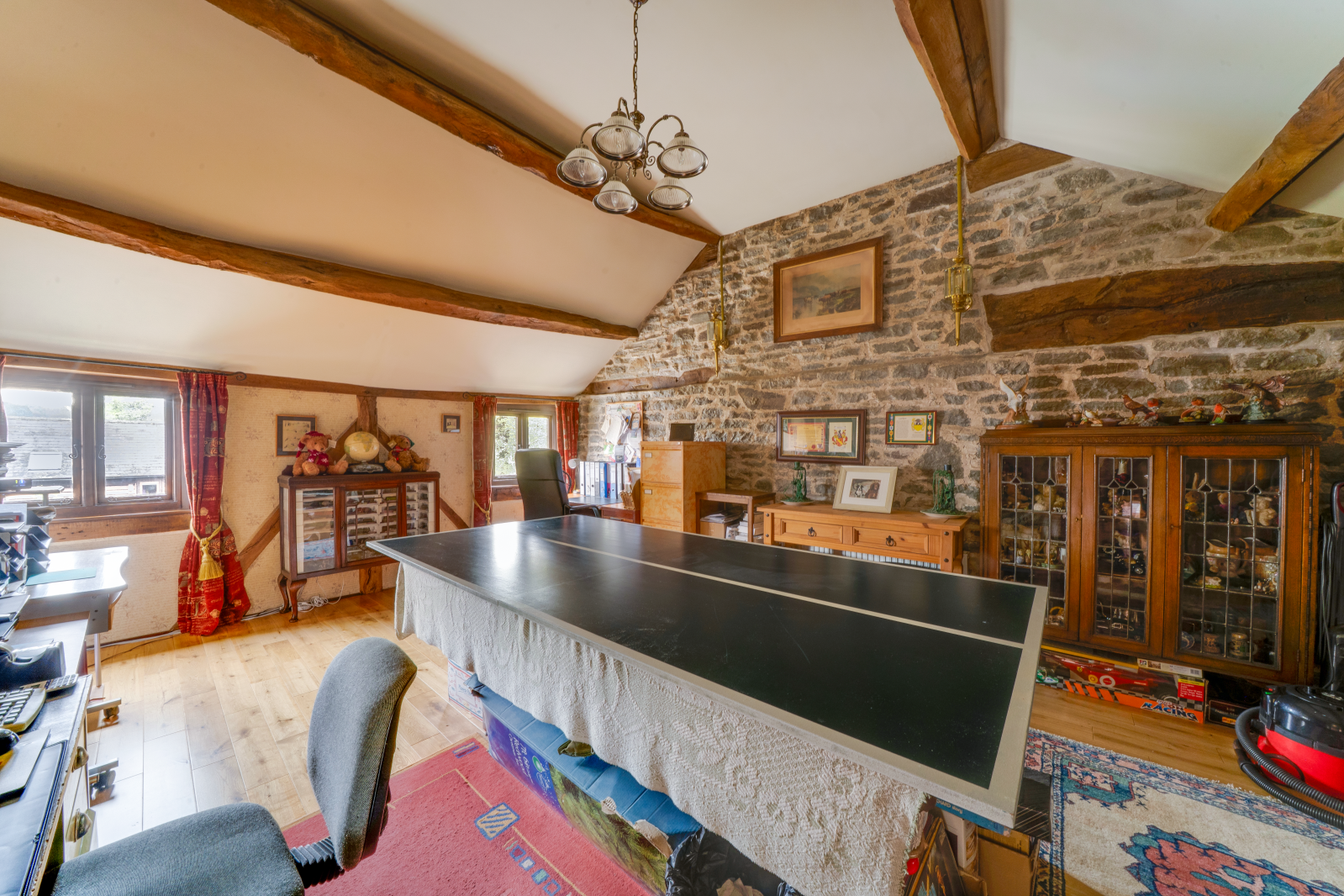 An additional reception room/games room, currently arranged as a home office, could be used as a fifth bedroom or study.