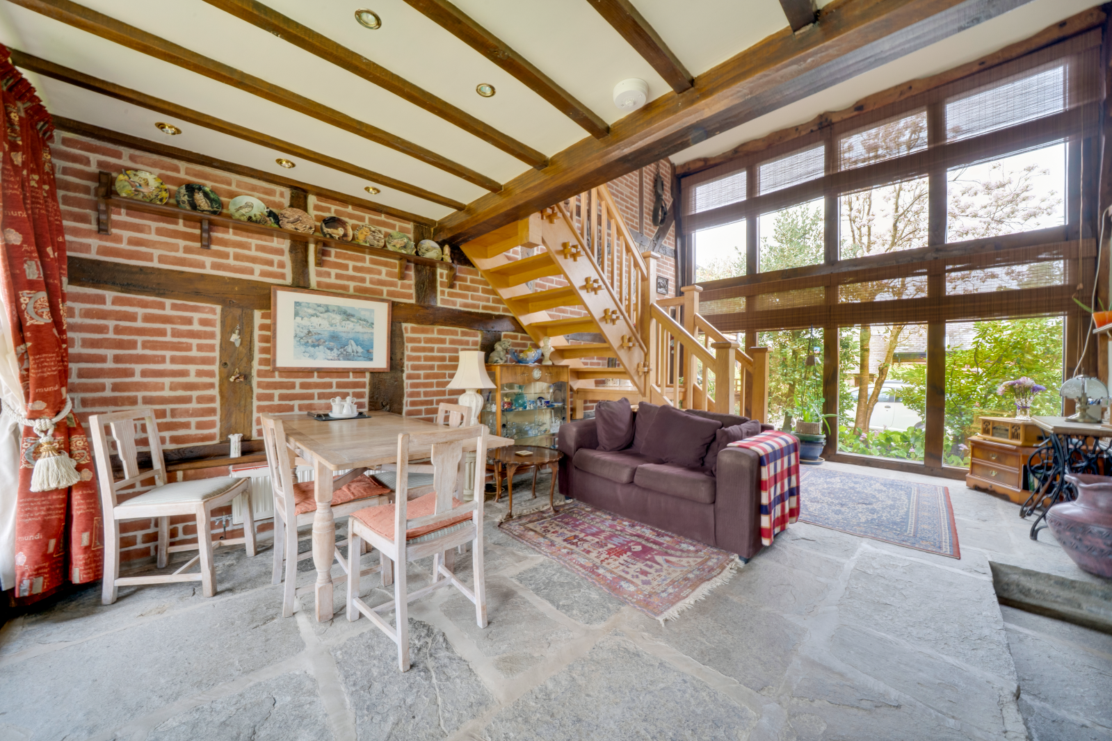 The Grade II listed barn, accessed via its own entrance just a few steps across the courtyard, is of generous proportions and arranged with characterful accommodation over two floors.