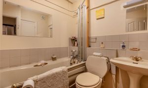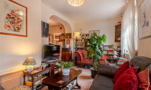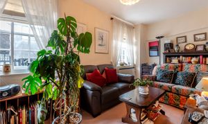 On the first floor is a versatile reception room currently arranged as a living room, offering generous proportions and flexibility to be used as a third bedroom. The L-Shaped layout separates the space. The two windows allow a flow of natural light. With direct access to the adjacent bathroom, which includes a bath with shower attachment, WC, wash hand basin, heated towel rail, and access to the airing cupboard, it is a versatile area.