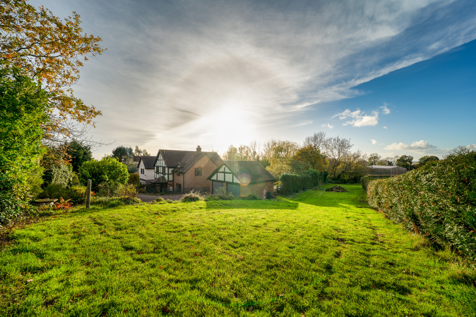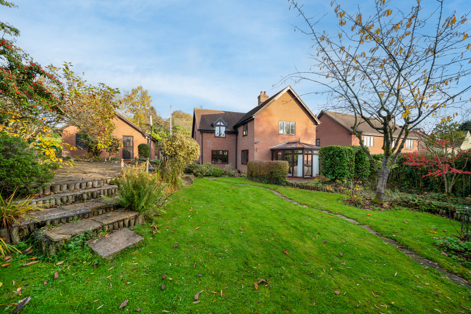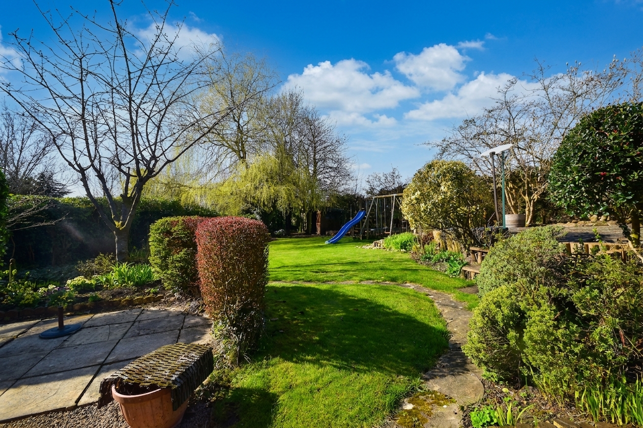 Immediately behind the property is your more formal space with patios and separate areas to enjoy throughout the day. To the Northern side of the boundary an extra plot of land has been added to the house to, give more space and to match the spacious house that is on offer.