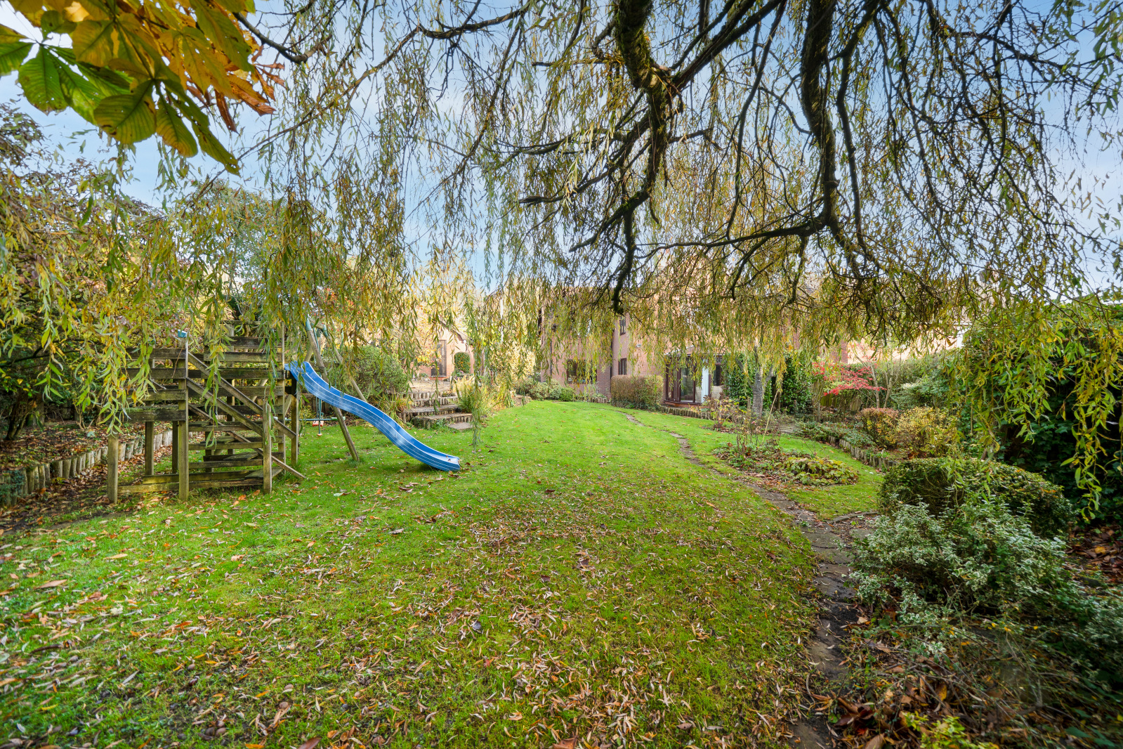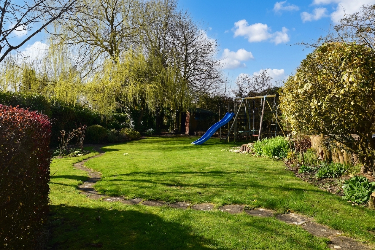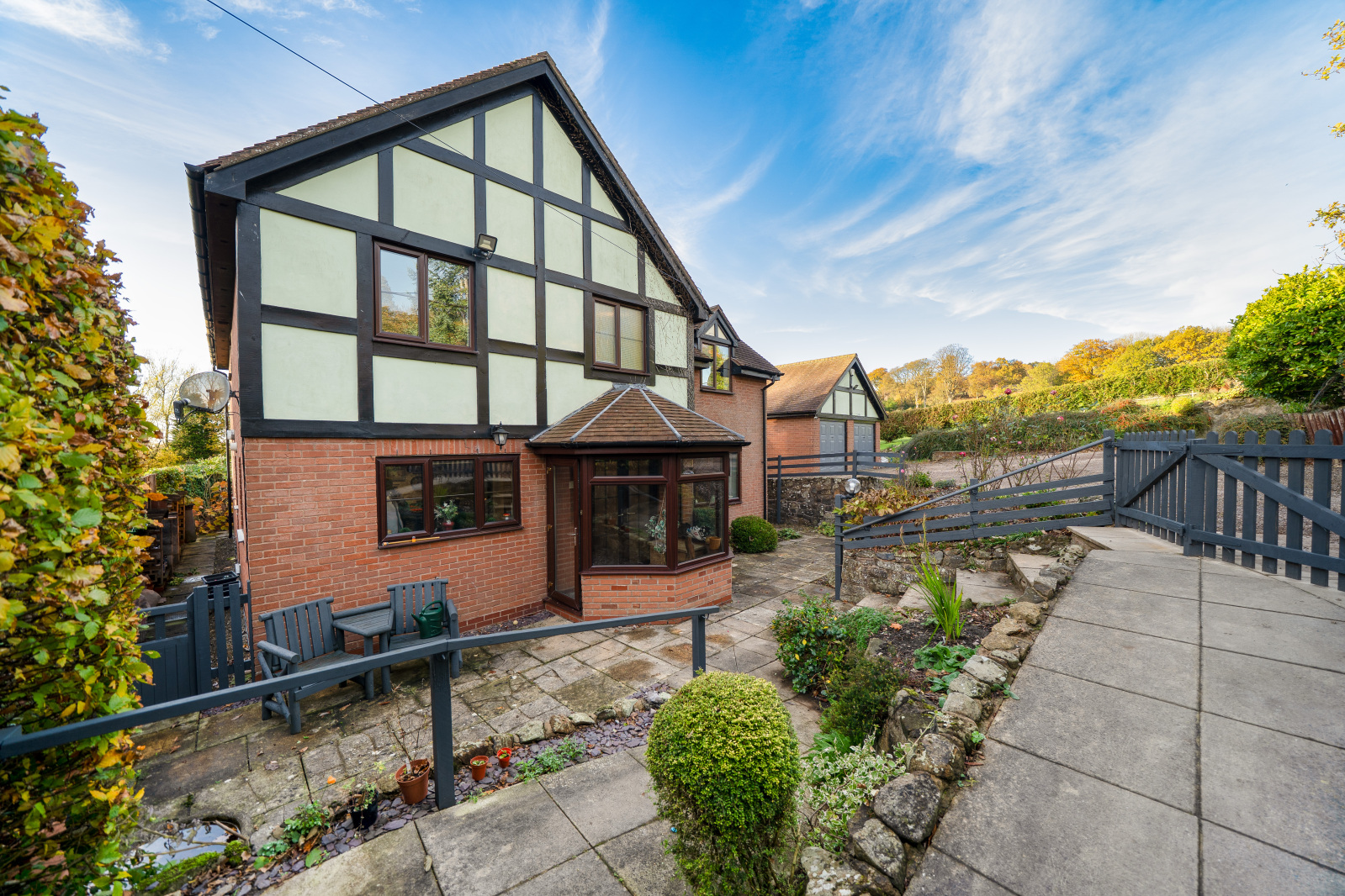 Immediately behind the property is your more formal space with patios and separate areas to enjoy throughout the day. To the Northern side of the boundary an extra plot of land has been added to the house to, give more space and to match the spacious house that is on offer.