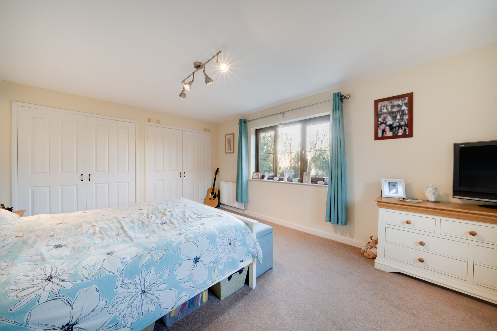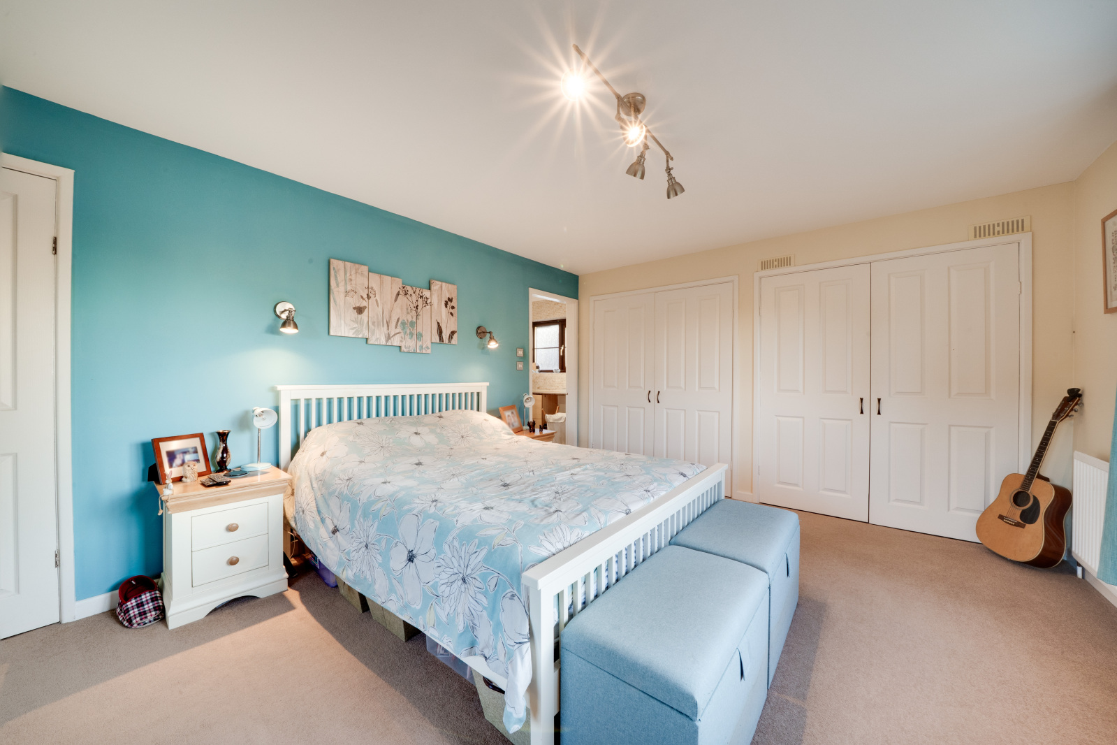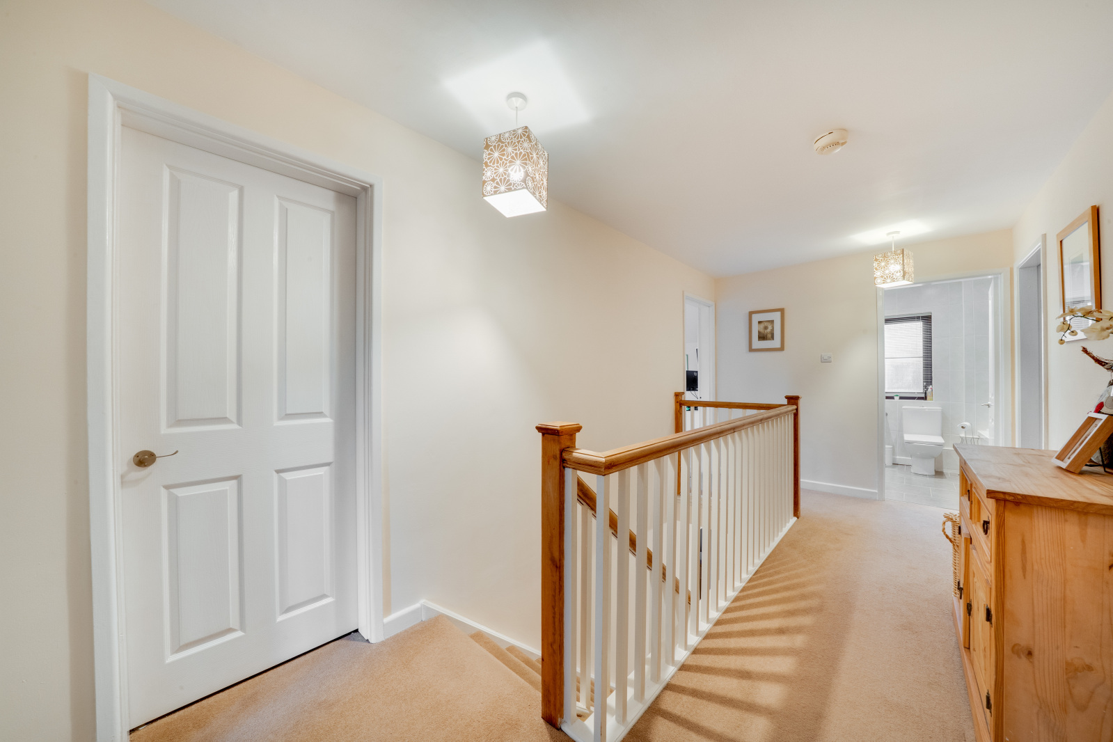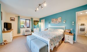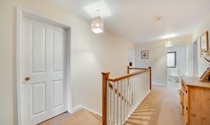 A wide staircase rises to a bright airy landing, giving access to four double bedrooms, a large airing cupboard and family bathroom comprising bath, separate shower cubicle, WC and wash hand basin. The principal bedroom at the back of the home benefits from an en-suite shower room and fitted wardrobes which span the width of the room. All of the remaining bedrooms, are also excellent sizes, and enjoy different aspects looking out over surrounding countryside.