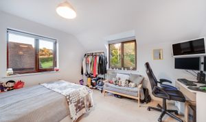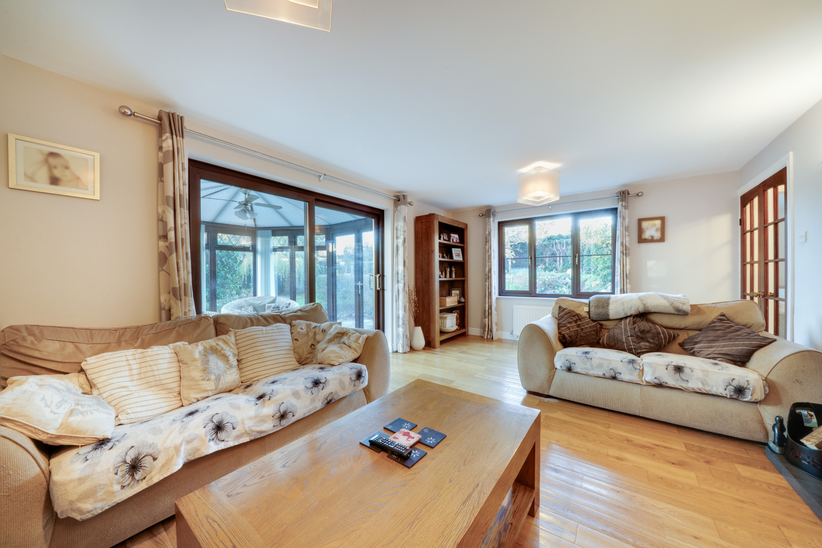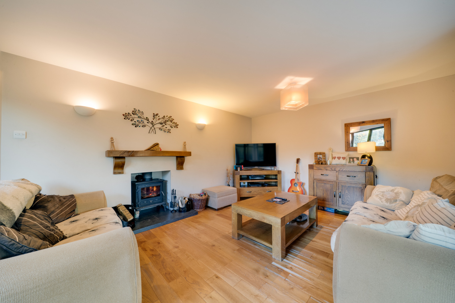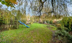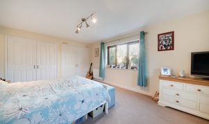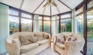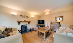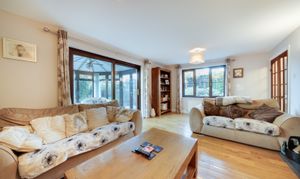 The living room is a particularly attractive space, with fireplace housing a woodburning stove and double sliding doors opening into the conservatory which overlooks the mature rear garden. This large room at the rear of the property makes the most of the views and provides a wonderful place to relax and enjoy throughout the seasons.