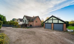 To the front, there is ample driveway parking leading to a detached double garage with water, with further space for a caravan or additional vehicles. Behind the garaging is the modern oil tank and secondary access to the garage.