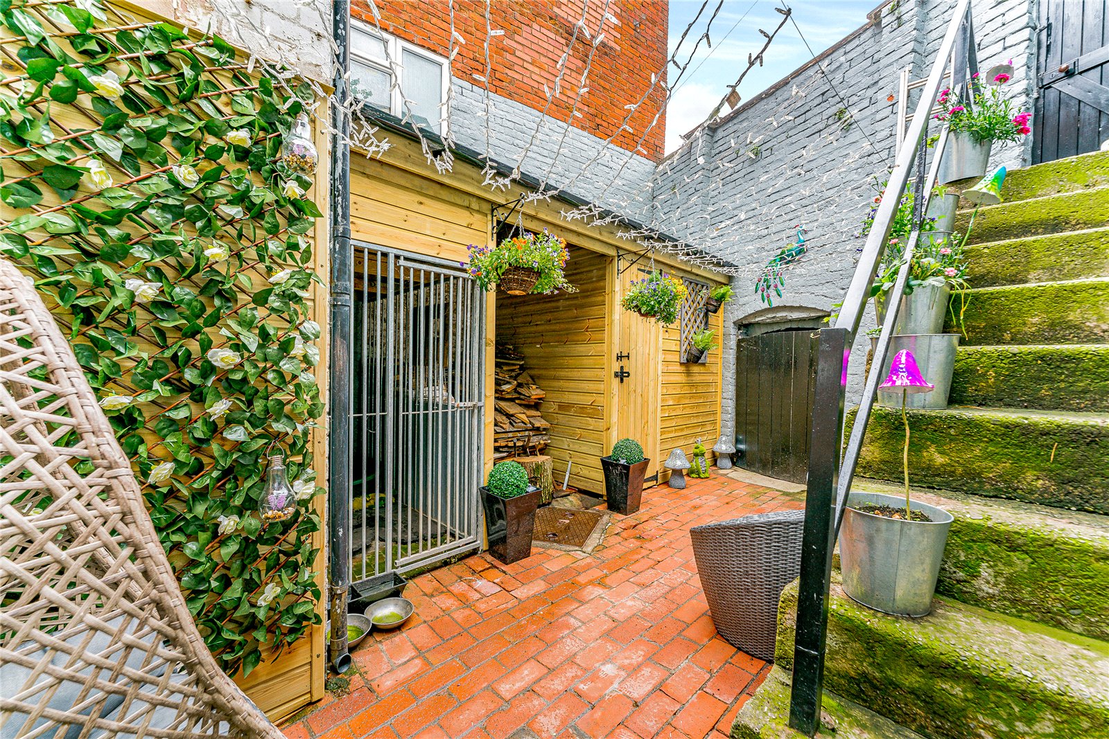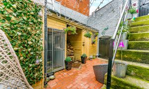 Outside, a paved courtyard area provides space to sit. Part of the space has been divided into a wood store, storage cupboard and dog kennel. Steps from here go up to meet the road on St Mary's Lane, which is another access point for the annexe.