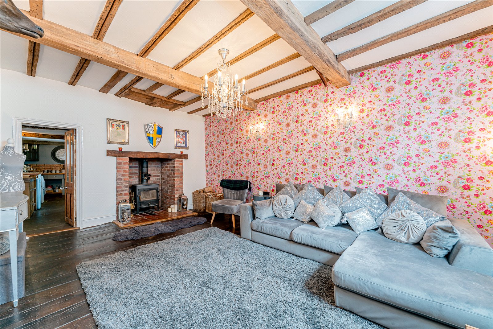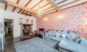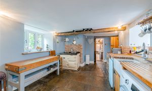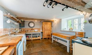 You enter through the imposing front door to a large reception hallway with period staircase rising to the first floor, stairs down to the cellar, door to the downstairs cloakroom/wc and door at the rear to outside. A door to your right gives access to the large sitting room with wooden flooring, beams and brick alcove with woodburning stove in situ. The kitchen has a rustic feel to it with wooden units, flagstone flooring and electric Aga. There is ample space for a table.