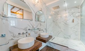 A door from the landing which can be locked goes through to the secondary accommodation which could be incorporated easily into the main house if required. The second floor offers two further double bedrooms and family bathroom comprising walk in shower, wc and wash hand basin. On the top floor is another room which is currently divided into a bedroom and seating area. There are two skylights, allowing plenty of light to enter.