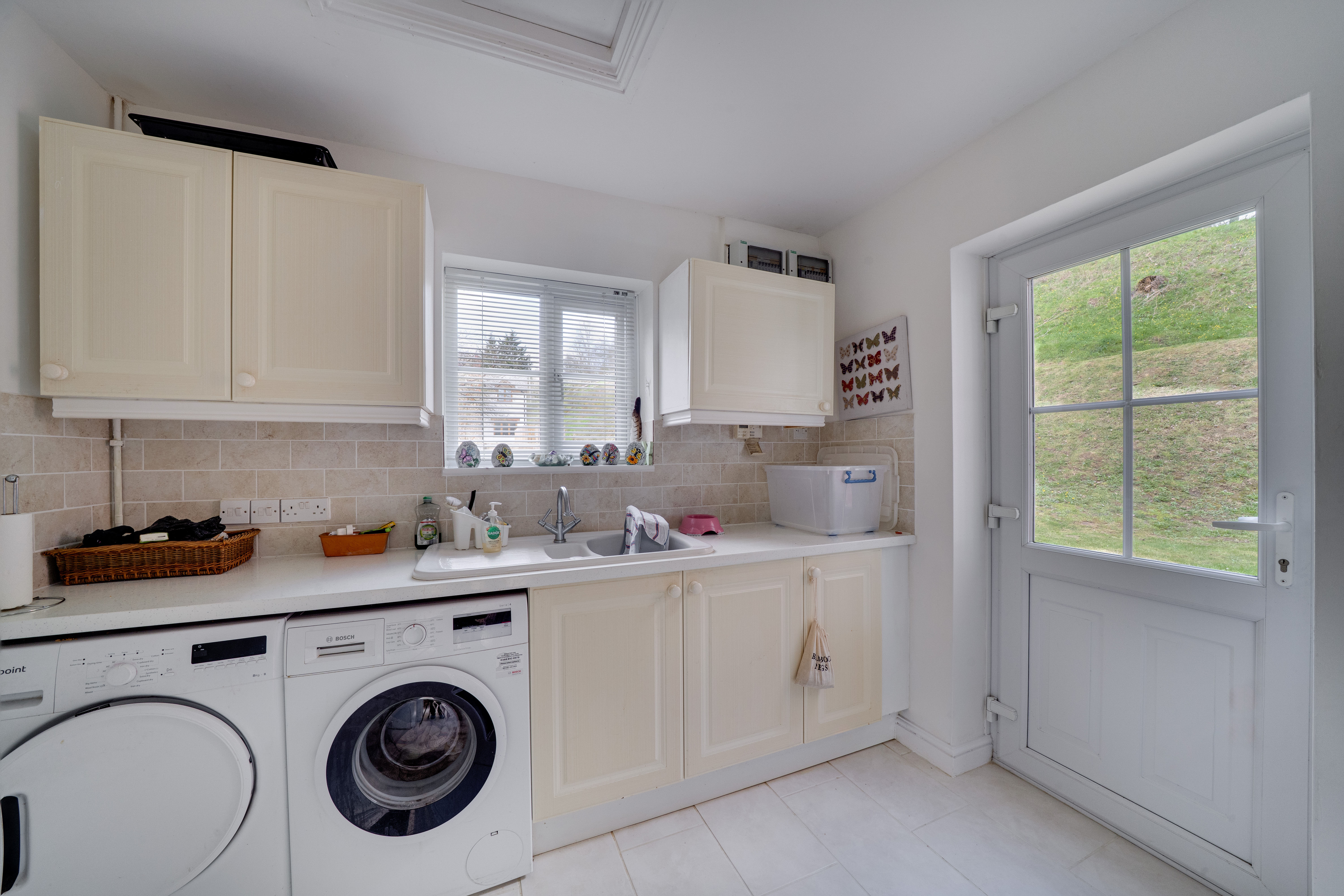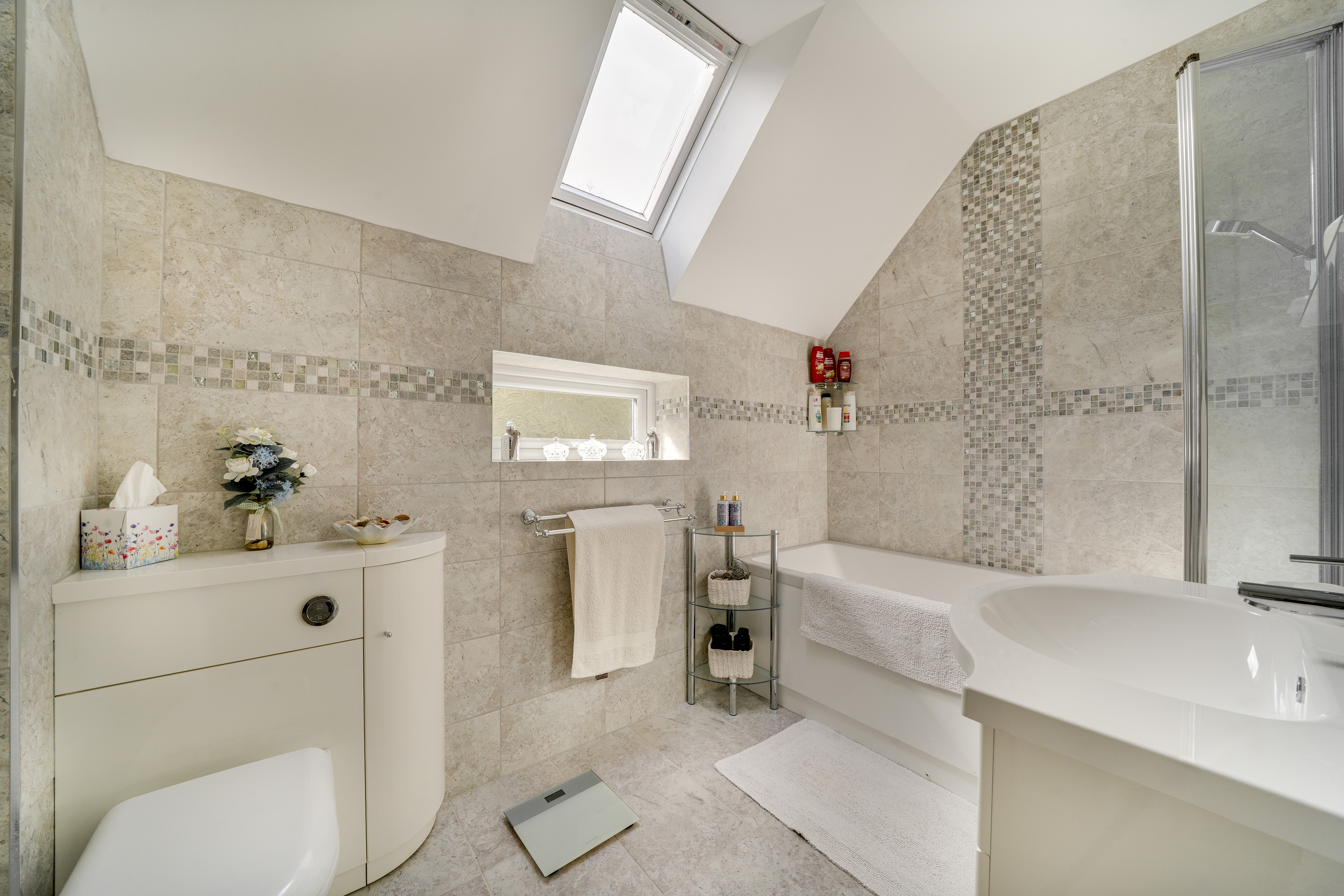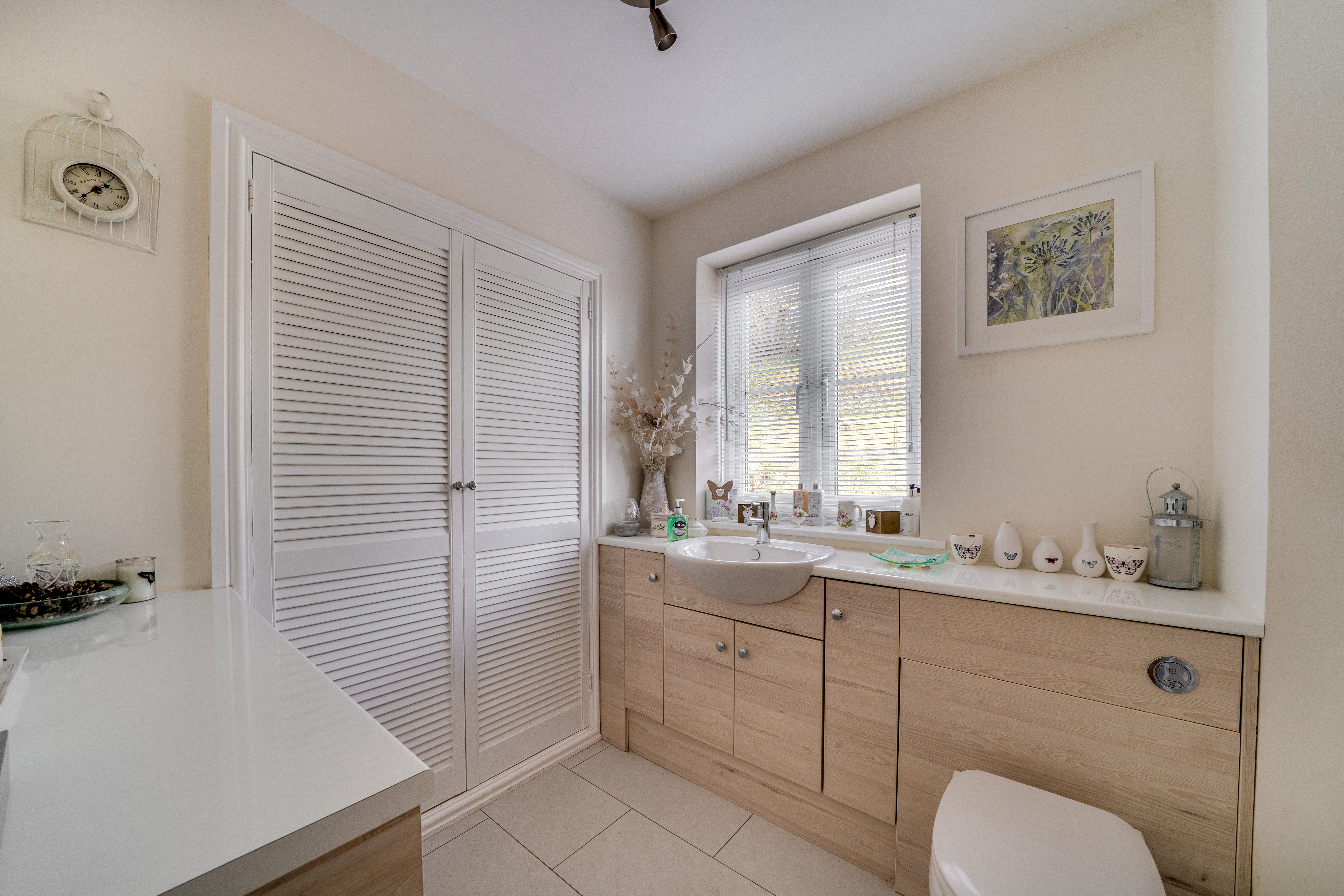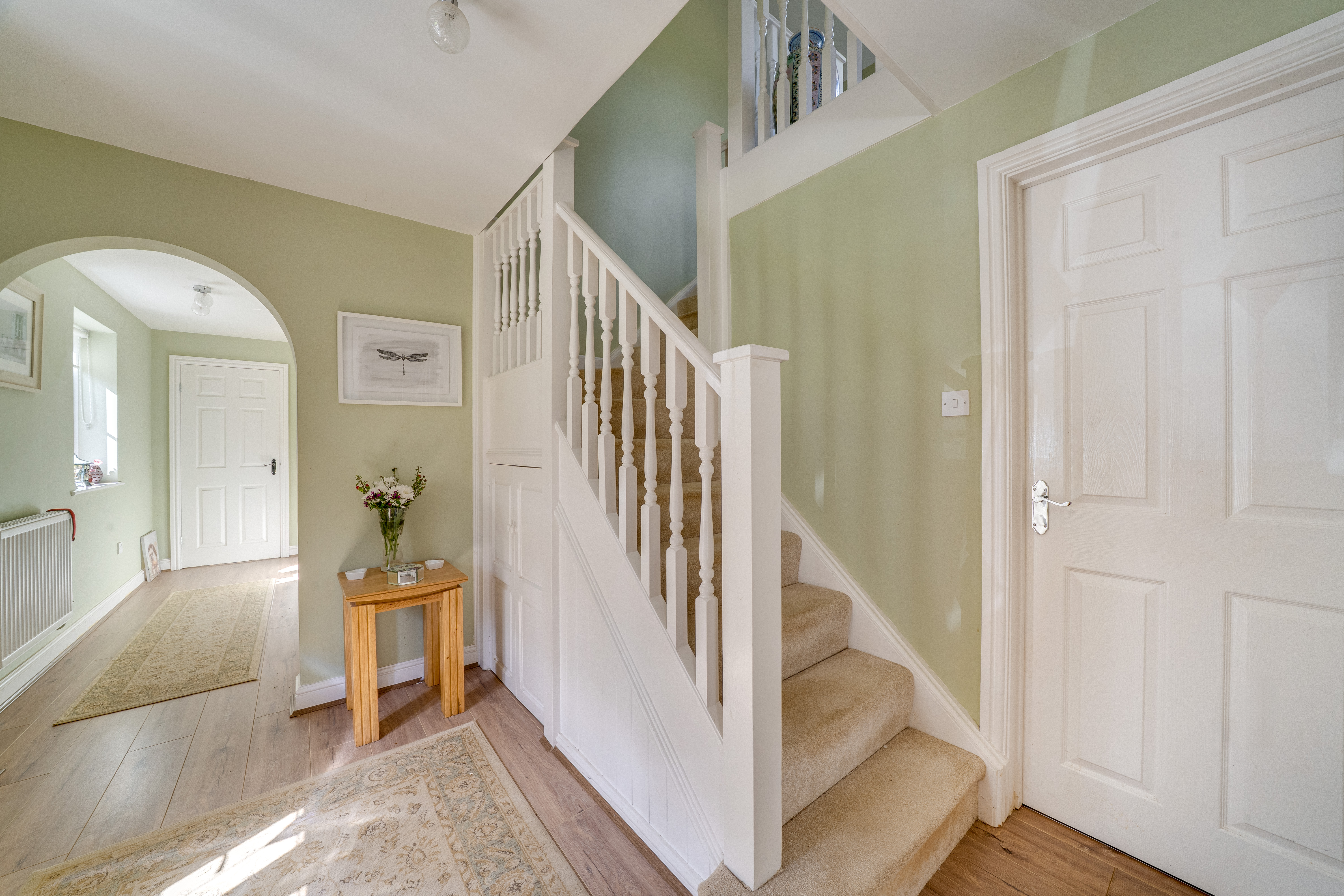 The staircase in the hallway leads you to four inviting bedrooms and the family bathroom, each providing unique views of the property. The bedrooms and upstairs hallway are fully carpeted, creating a warm and cosy atmosphere. The principal bedroom features its own ensuite for added convenience. The family bathroom is well-appointed, complete with a bath and overhead shower, as well as a WC and hand wash basin.