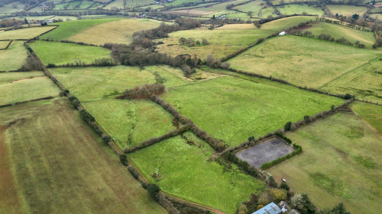 The land which lies to the south of the house is predominantly pasture land, with approximately 2 acres of woodland. The grassland is level to gently sloping in places. Equestrian facilities include a stable block with three large boxes, a tack room, and approximately a 30m x 40m ménage with drainage, screened by mature hedgerows.