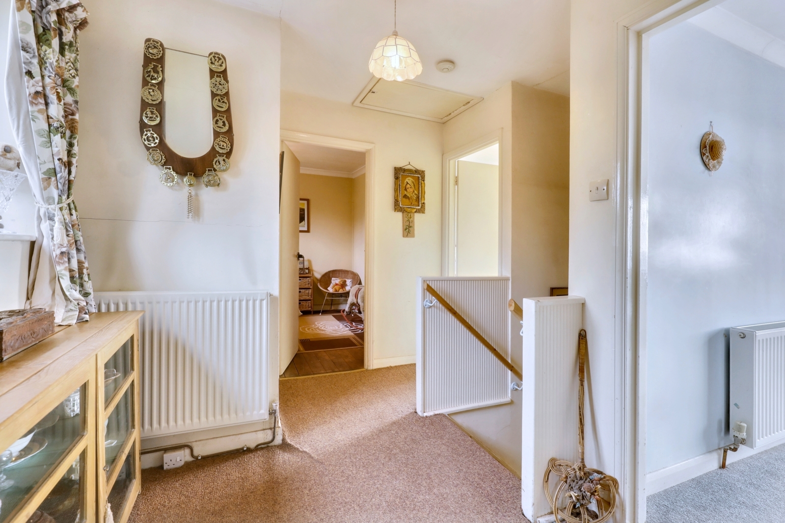 Upstairs, there are three bedrooms and a family bathroom. The principal bedroom enjoys double aspect windows looking out over the rural views and storage cupboard. Bedroom two is another good sized double with storage cupboard and south facing window, the third bedroom is a single. The family bathroom comprises bath with shower over, wash hand basin and WC.