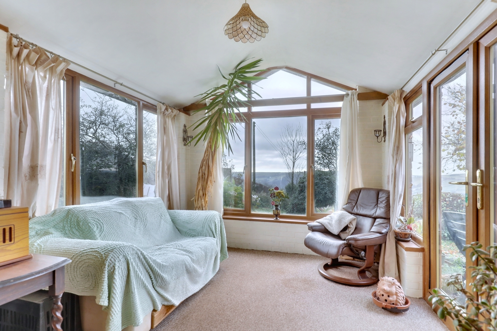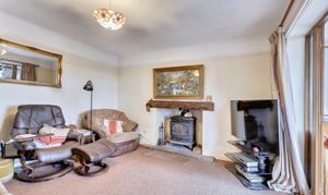 You approach the house into the porch, which leads through into a welcoming reception hallway with stairs leading to the first floor. A door to your right leads into the good sized living room, feature fireplace with inset woodburning stove, flagstone hearth and Oak mantle over. Double doors from here open into the sun room which is south facing with a pitched roof, windows to three elevations and double doors opening out into the garden. There are beuatiful views out from here over the gardens and surrounding countryside.