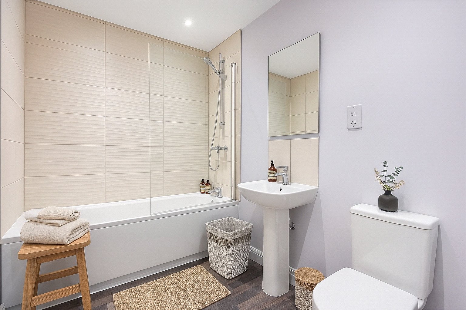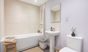 The family bathroom is finished to a modern standard and comprises a bath with shower over, wash hand basin, WC and heated towel rail. A further storage cupboard positioned close by adds to the practicality of the layout.