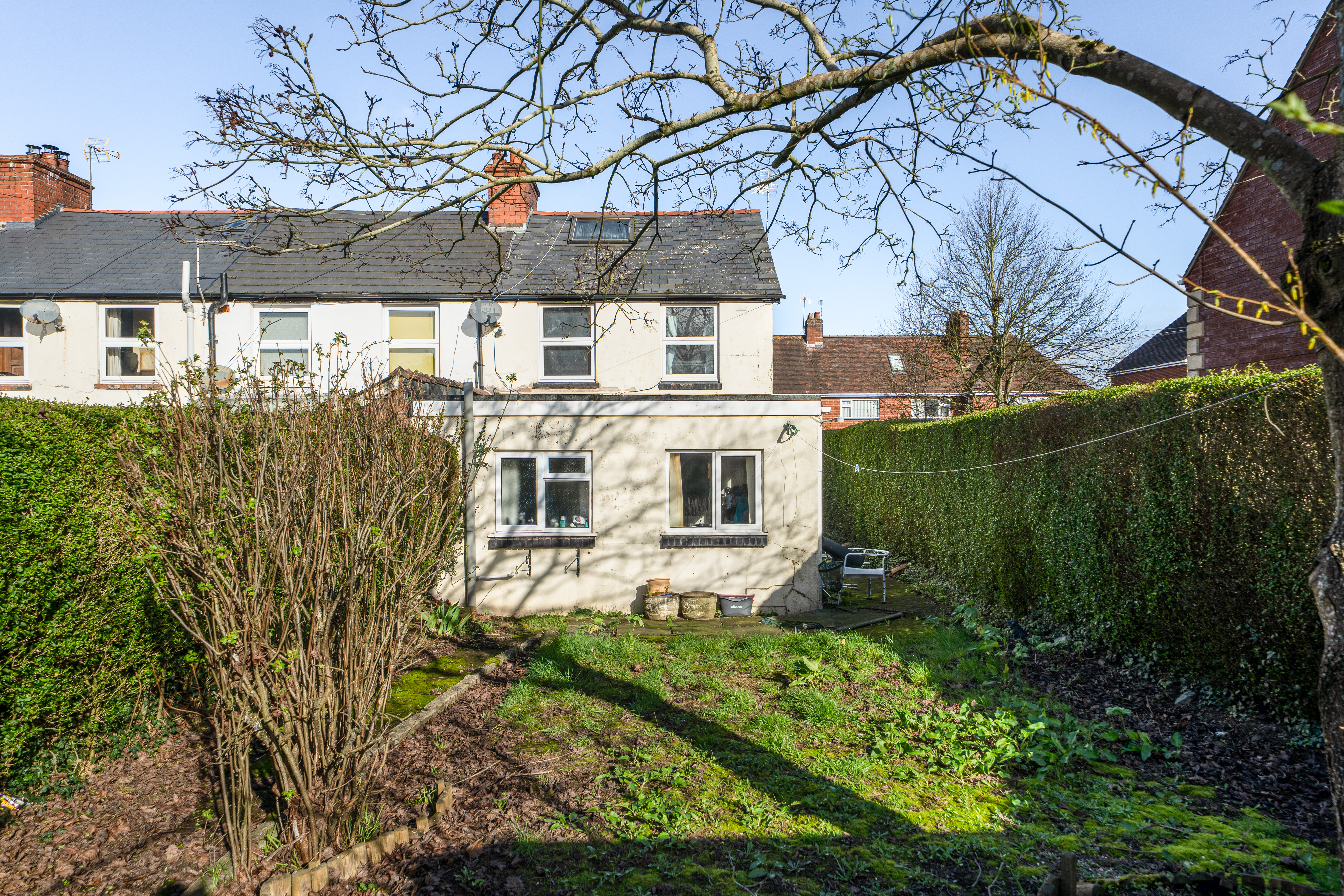 A spacious three-bedroom end-terrace home, situated in a popular residential area of Highley, offering extended accommodation with excellent potential for improvement.