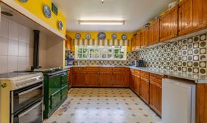 The kitchen is fitted with handcrafted wooden base and wall units, creating a warm and traditional feel. Dual aspect windows fill the space with natural light, and the room also benefits from the addition of a classic Aga, perfect for both cooking and character.