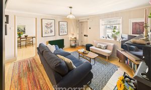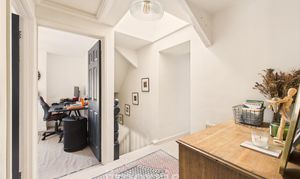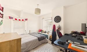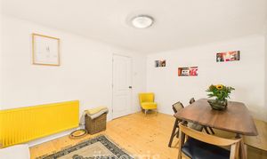 Double-glazed sash window to the front aspect, complemented by continuous wood flooring and a double panel radiator.