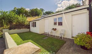 To the side of the property, a hardstanding driveway provides off-road parking. The front and side gardens are mainly laid to lawn, offering attractive outdoor space. Additional benefits include two brick-built outbiuldings, both of which have power and lighting connected, one also has plumbing for a washing machine.