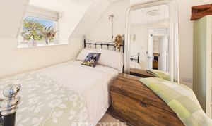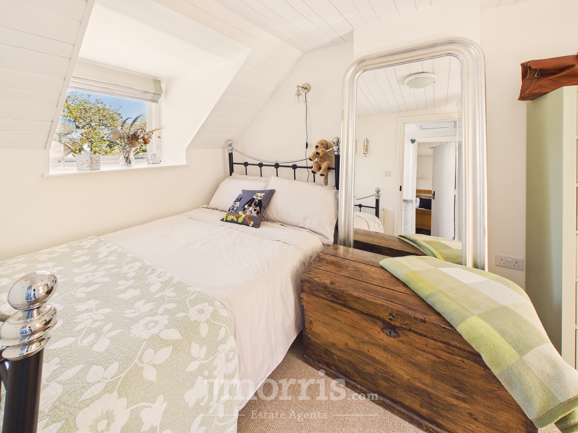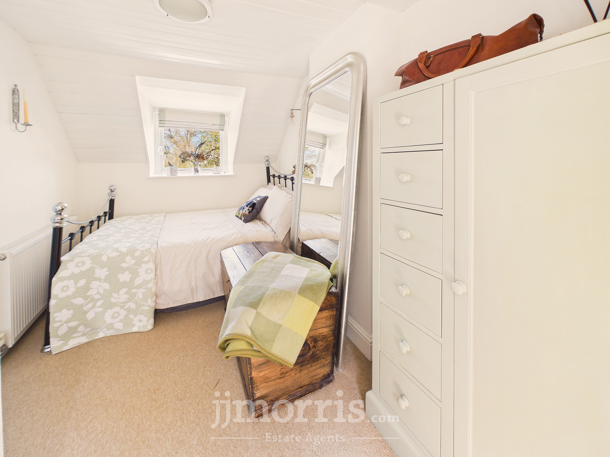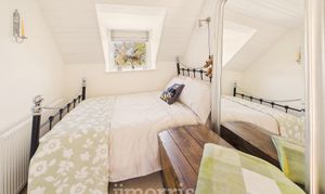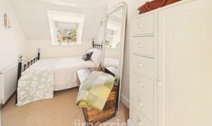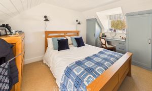 With fitted carpet, double glazed sash window to fore with Roman blind and a double glazed dormer window to rear with Roman blind, ceiling light, painted tongue and groove clad ceiling, radiator, robe hooks and 4 power points.