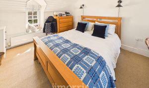 With fitted carpet, double glazed sash window to fore with Roman blind and a double glazed dormer window to rear with Roman blind, painted tongue and groove clad ceiling, ceiling light, Hammonds fitted wardrobes and central dressing table, double panelled radiator, robe hooks and 4 power points.