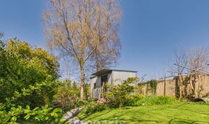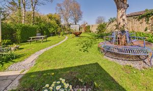 - Delightful rear Lawned Garden with a raised Timber Decked Patio, Flowering Shrubs and Mature Trees.