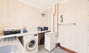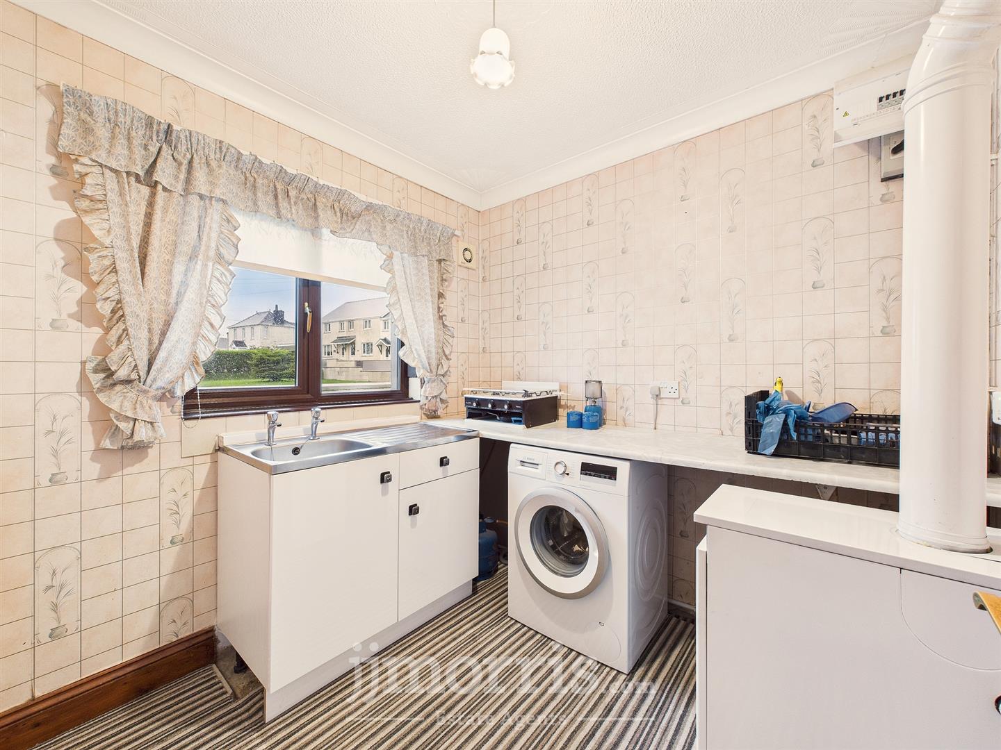 A range of base units with complimentary worktop surfaces, stainless steel sink and drainer unit, uPVC double glazed window, plumbing for washing machine, extractor fan, fuse box, Firebird Enviromax boiler, coved ceiling.