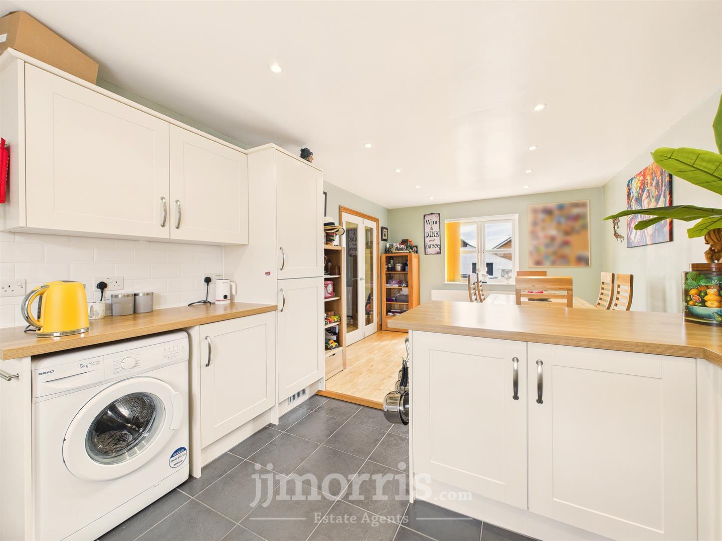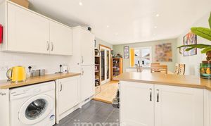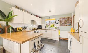 With tiled floor, worktop surfaces and wall units. Door to the rear garden.