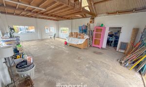 Twin opening doors to the front, windows, mezzanine storage. Light and power (separate supply). Side storage accessed from within the garage. Externally accessed bin store.