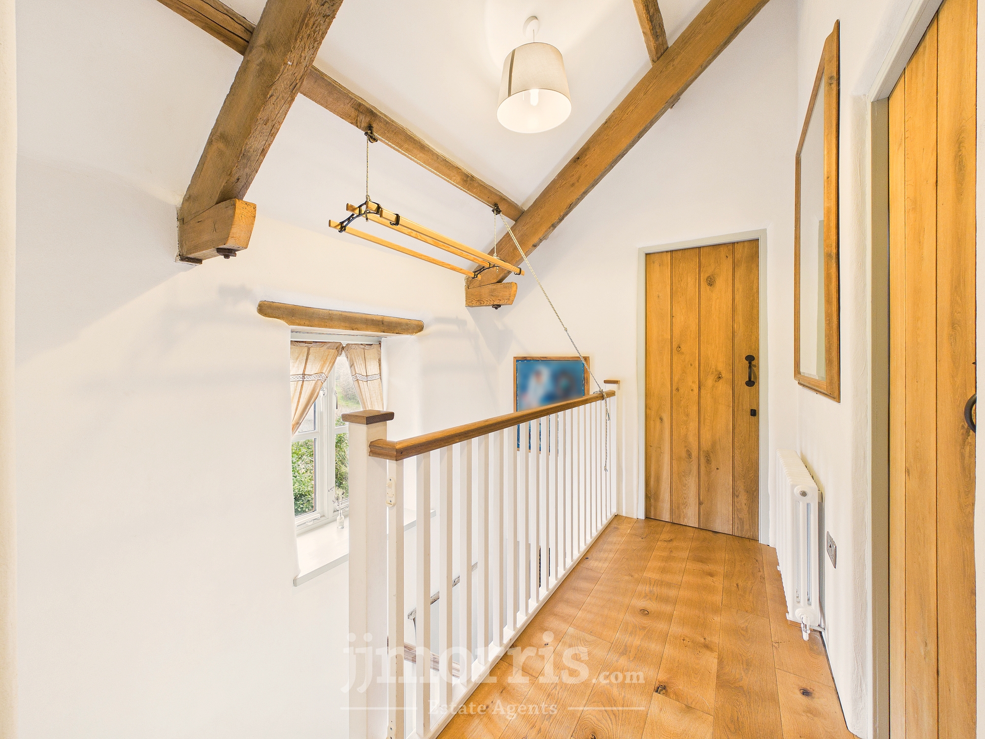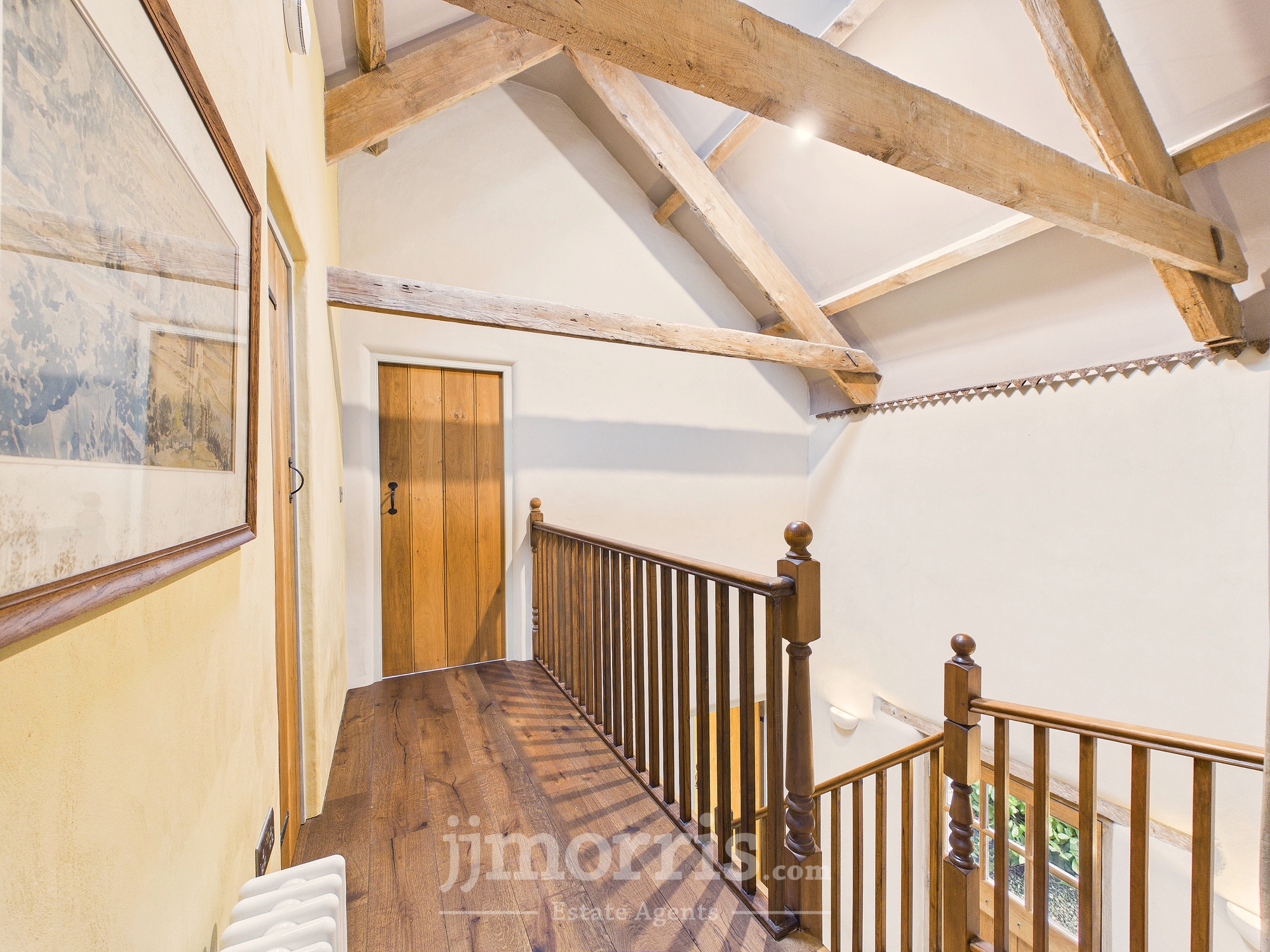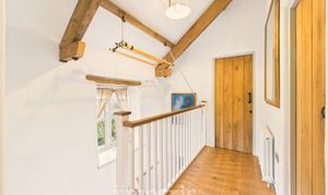 Galleried landing, engineered oak floor, large airing cupboard, exposed beams, Velux window, radiator, door through to:-