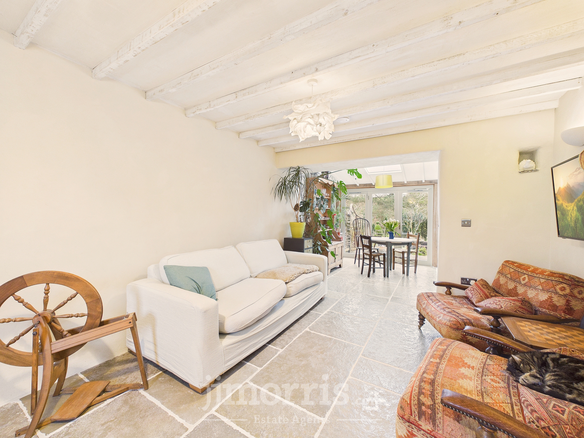 The traditional 18th century barn walls are 2 feet deep, adding an old-world feel to the place. The property features hemp and lime insulated walls, providing outstanding natural insulation and breathability, complemented by clay-painted walls that enhance air quality and create a warm, organic aesthetic. Double-glazed timber windows maintain character while supporting excellent thermal efficiency. Energy efficiency is further enhanced by a biomass boiler supplying underfloor heating, ensuring consistent, economical warmth throughout the home. The property also benefits from a 6kW solar photovoltaic array, significantly reducing electricity costs. Importantly, the self-contained annexe also enjoys its own solar hot water system reinforcing the property’s strong environmental credentials and low running costs