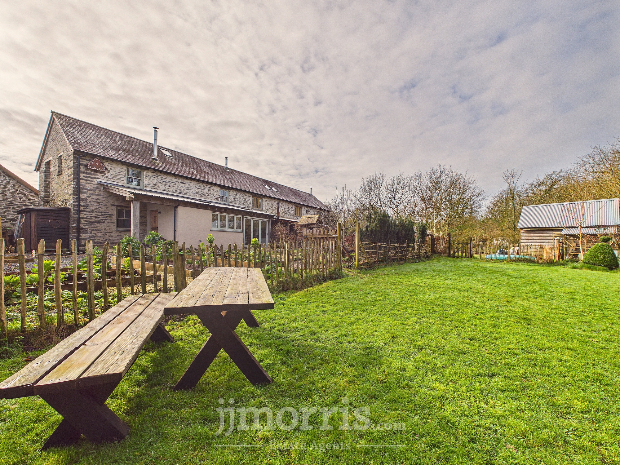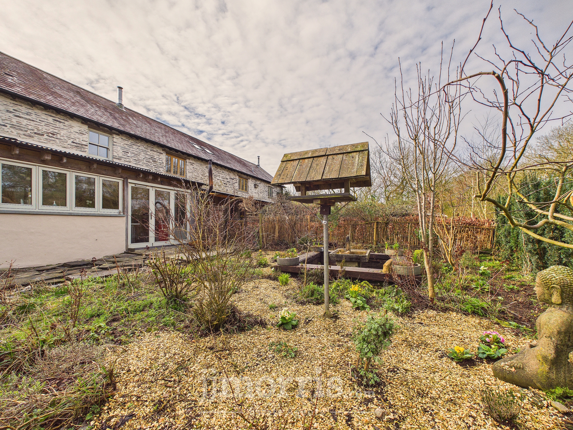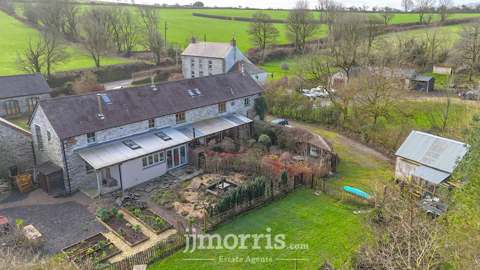 An exceptional and highly versatile eco property conveniently located midway between Cardigan and Newport and ten minutes from beaches. Set within approximately three acres of beautifully curated gardens, the private and secluded grounds feature bluebell woods with stream, edible forest garden and mini vineyard, offering a homesteading lifestyle opportunity combined with proven income potential. Figs and apricots grow on the warm SE facing front wall of the barn while the forest garden produces almonds, grapes and a variety of edible berries. A coppice wood supplies firewood of chestnut and hazel. This recently-converted barn has been thoughtfully designed and converted to conservation standards with sustainability at its core.