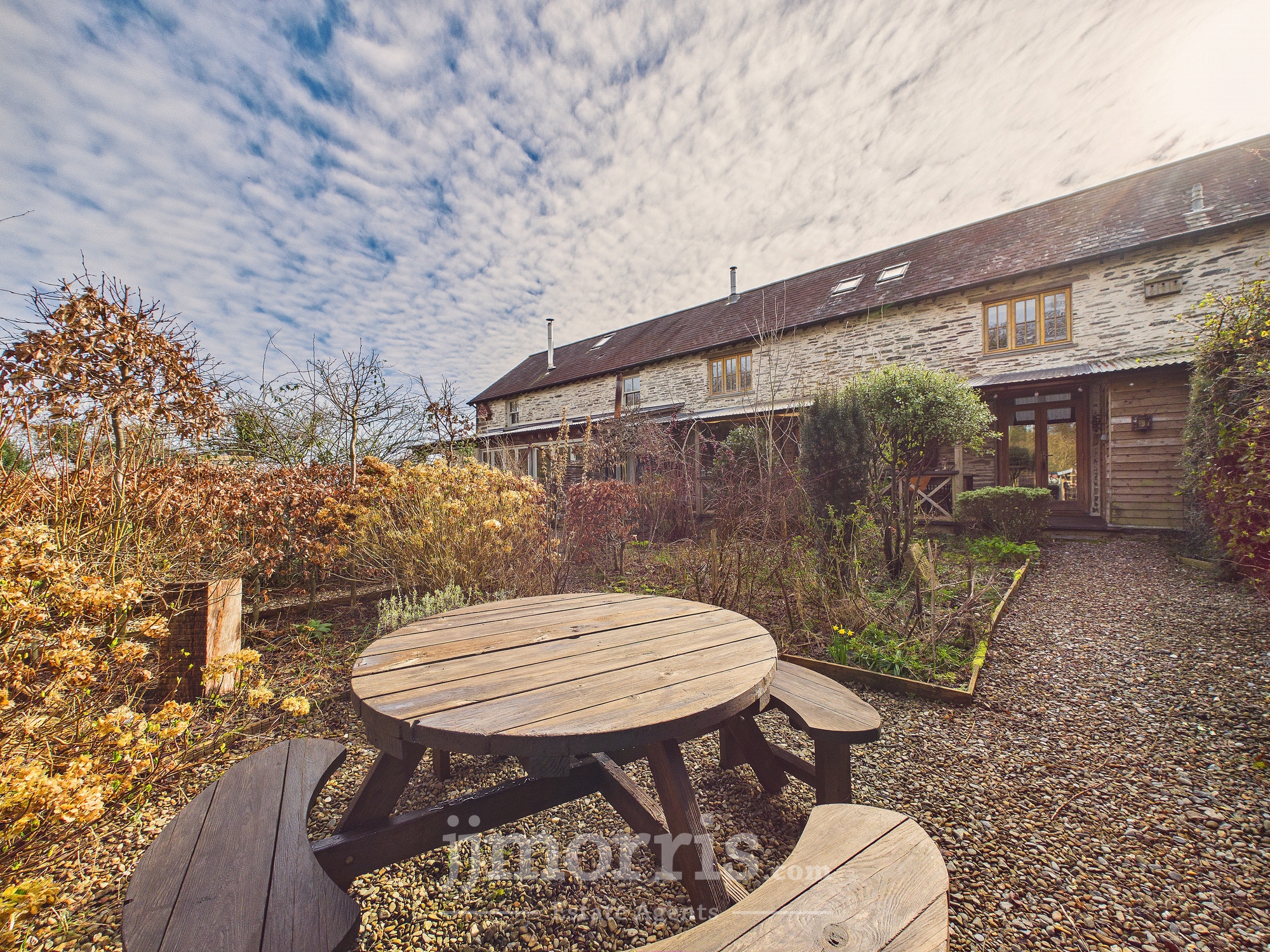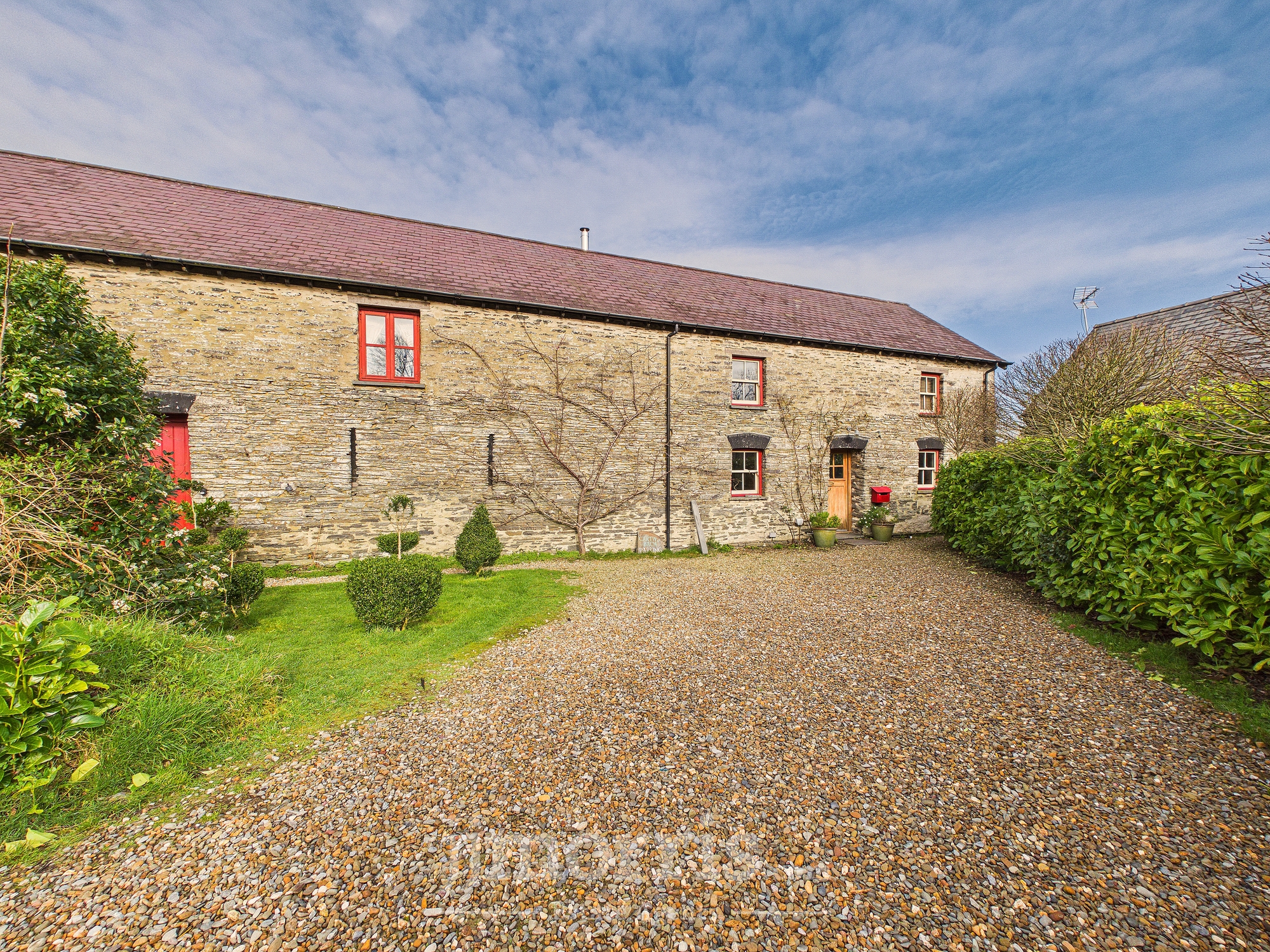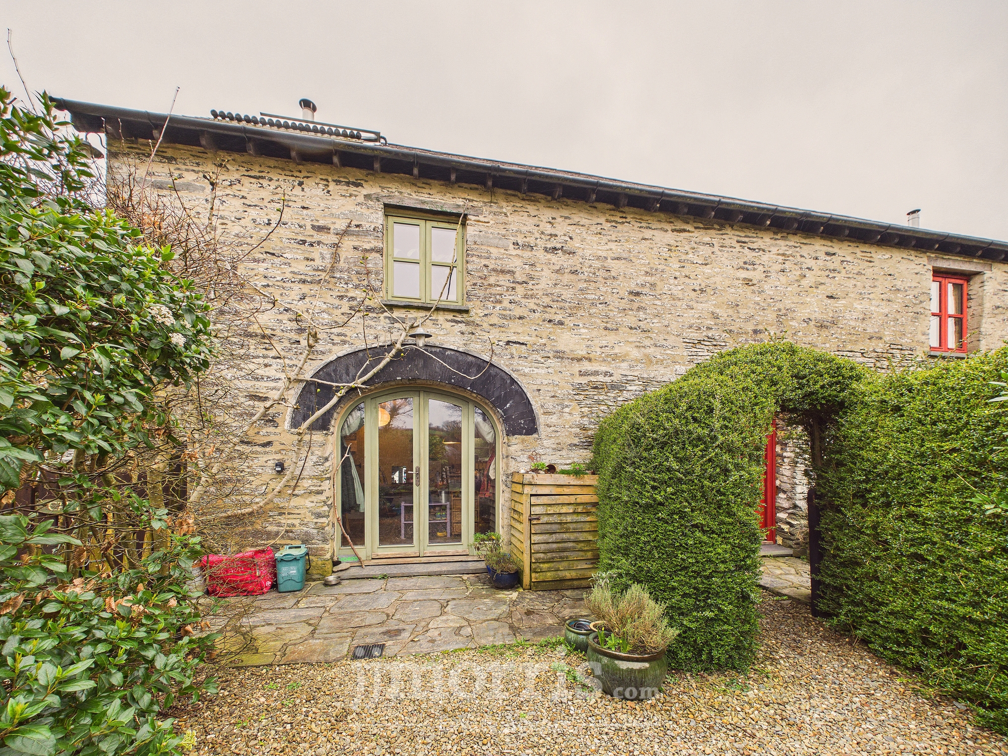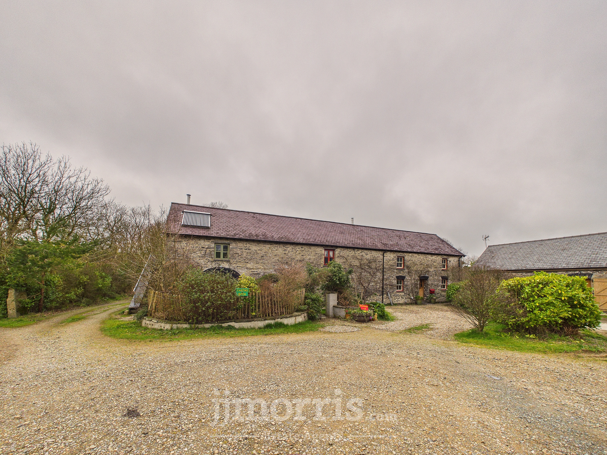An exceptional and highly versatile eco property conveniently located midway between Cardigan and Newport and ten minutes from beaches. Set within approximately three acres of beautifully curated gardens, the private and secluded grounds feature bluebell woods with stream, edible forest garden and mini vineyard, offering a homesteading lifestyle opportunity combined with proven income potential. Figs and apricots grow on the warm SE facing front wall of the barn while the forest garden produces almonds, grapes and a variety of edible berries. A coppice wood supplies firewood of chestnut and hazel. This recently-converted barn has been thoughtfully designed and converted to conservation standards with sustainability at its core.