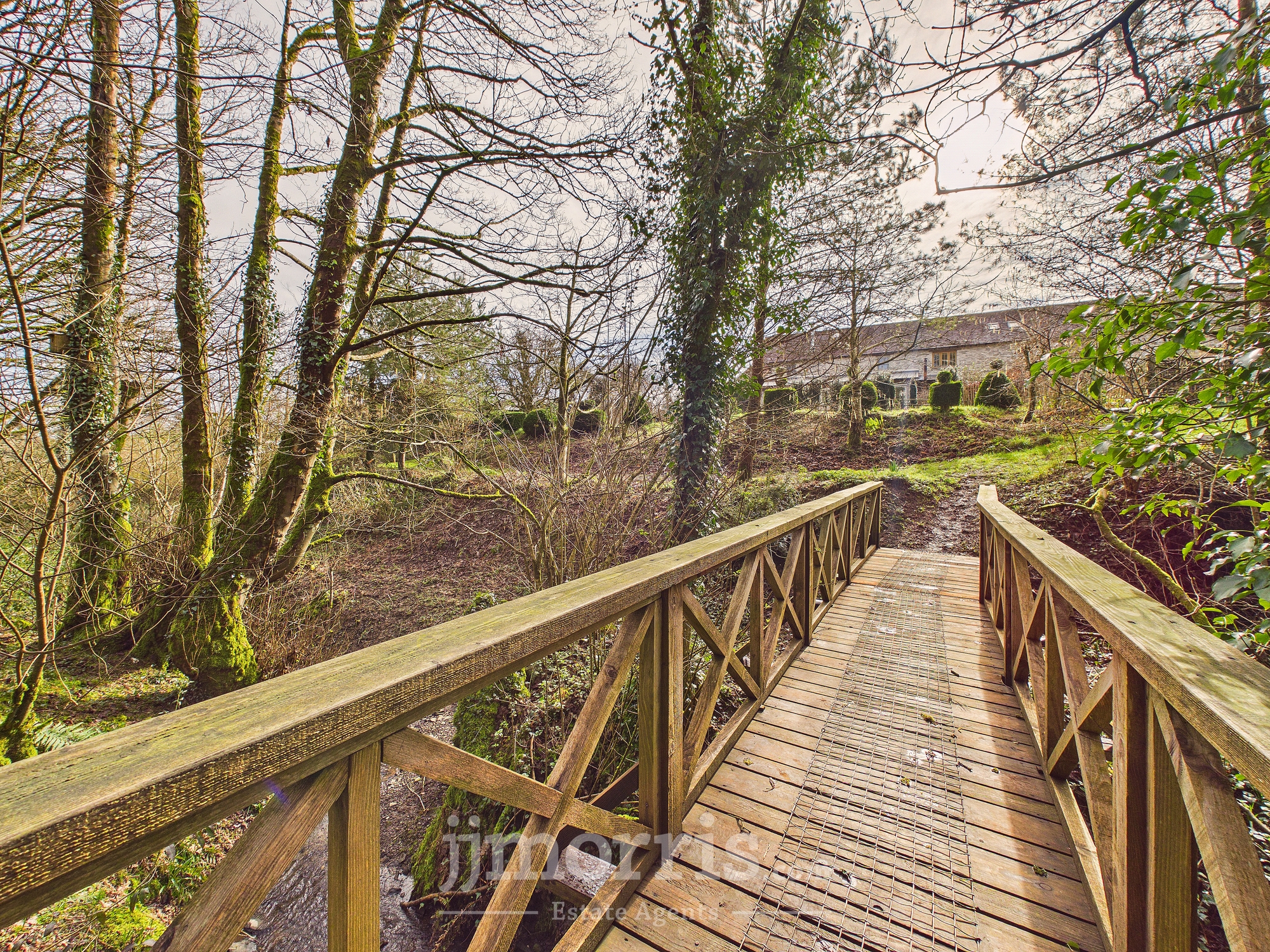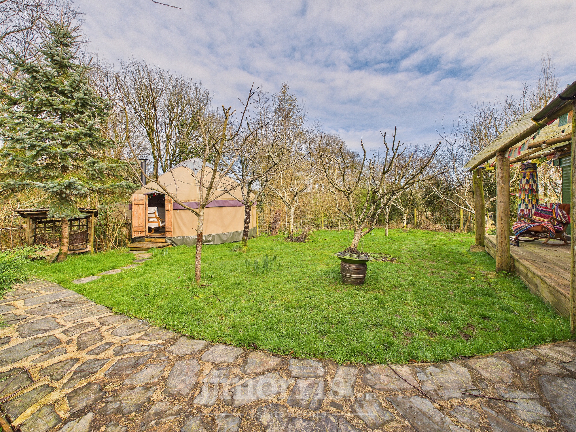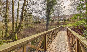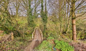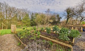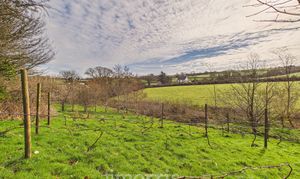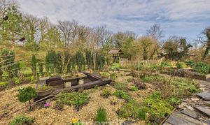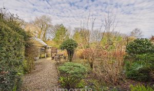 The property is approached via a shared gravel driveway, providing ample parking and turning space for both the principal residence and the self-contained annex. To the rear, a beautifully maintained private garden creates an ideal setting for relaxation and entertaining. A characterful pizza oven forms an attractive focal point, complemented by mature shrubbery and a stylish decked seating area set beneath a canopy. Further features include raised flower beds, a paved patio area suitable for al fresco dining, and an expansive lawn extending beyond. Positioned to the right of the property is an orchard, together with a separate living space that presents excellent potential for ancillary accommodation, guest use, or income generation as a holiday let (subject to any necessary consents). A charming woodland area is accessed via a picturesque wooden bridge. The entire grounds are approximately 3 acres. The land at the bottom is a south facing sloping forest garden with a track, vineyard and varied edible shrubs and berries and benefits from its own independent access track, offering both privacy and practical convenience.