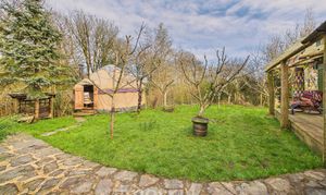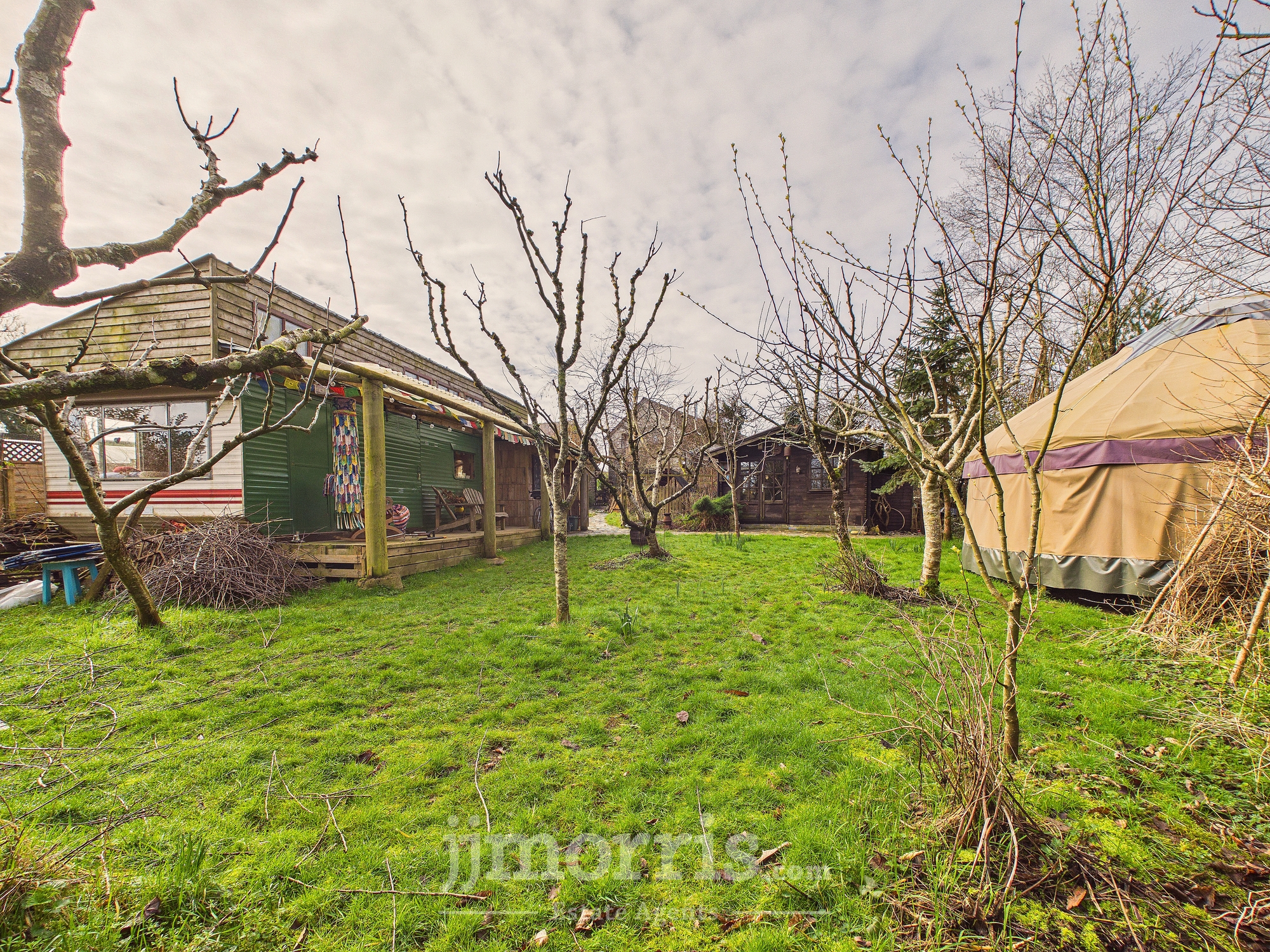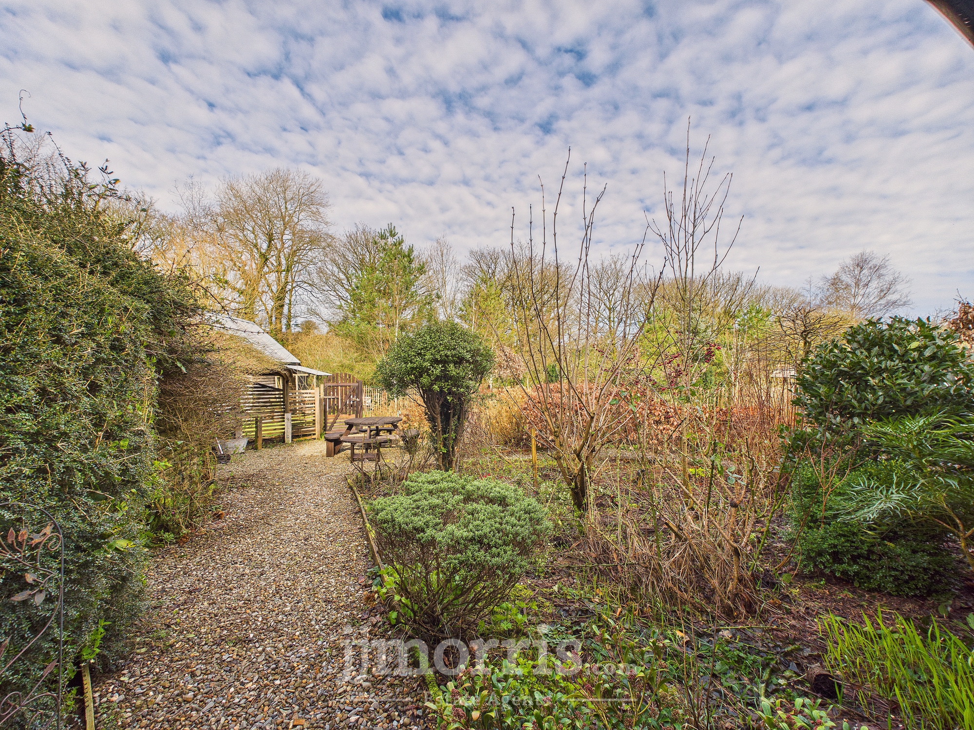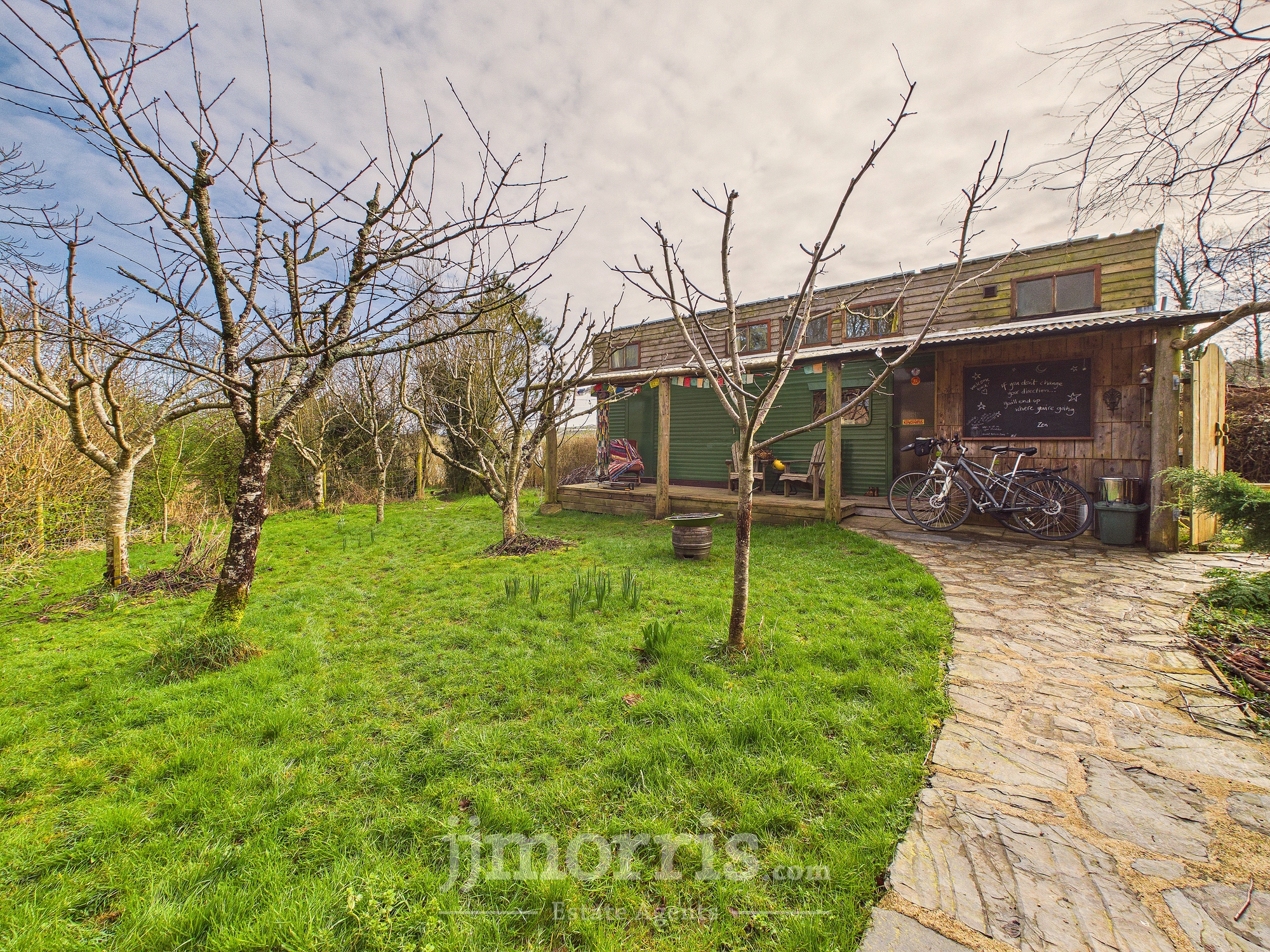 The property is approached via a shared gravel driveway, providing ample parking and turning space for both the principal residence and the self-contained annex. To the rear, a beautifully maintained private garden creates an ideal setting for relaxation and entertaining. A characterful pizza oven forms an attractive focal point, complemented by mature shrubbery and a stylish decked seating area set beneath a canopy. Further features include raised flower beds, a paved patio area suitable for al fresco dining, and an expansive lawn extending beyond. Positioned to the right of the property is an orchard, together with a separate living space that presents excellent potential for ancillary accommodation, guest use, or income generation as a holiday let (subject to any necessary consents). A charming woodland area is accessed via a picturesque wooden bridge. The entire grounds are approximately 3 acres. The land at the bottom is a south facing sloping forest garden with a track, vineyard and varied edible shrubs and berries and benefits from its own independent access track, offering both privacy and practical convenience.