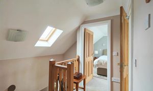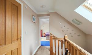 Dimensions: 2.64m x 1.35m (8'8" x 4'5" ). With fitted carpet, coved ceiling, 4 power points, ceiling light, mains smoke detector, Velux window and an electric light over stairwell.