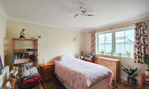 Dimensions: 3.68m x 3.43m (12'1" x 11'3" ). With a laminate oak floor, uPVC double glazed window, coved ceiling, ceiling light and 2 wall lights, built in wardrobe with shelves, TV point and 12 power points.