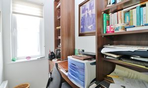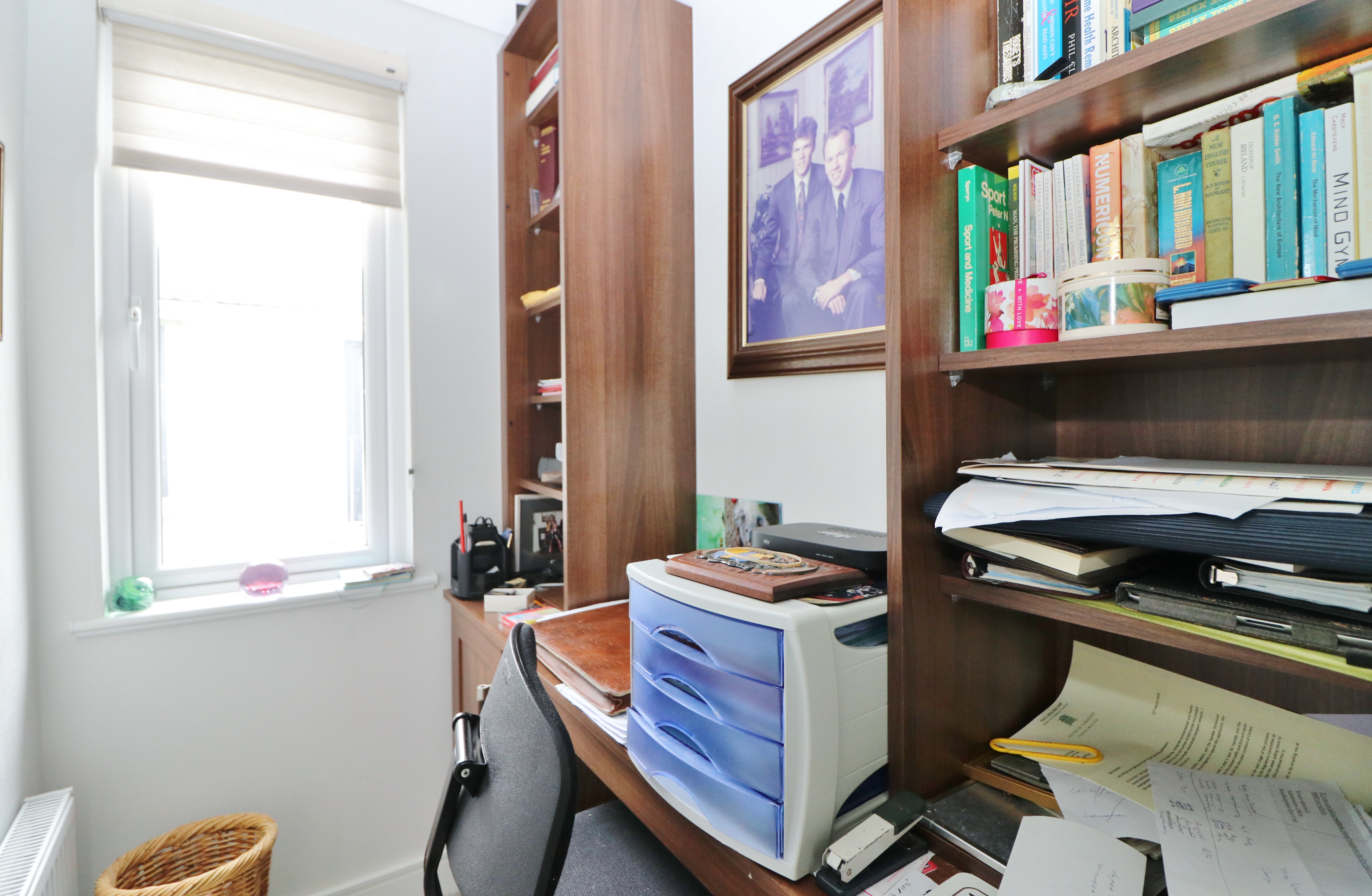 The kitchen is open plan to the dining room which has a window to the side and access to the rear hallway, which has a built-in storage cupboard and provides access to both bedrooms, the bathroom and the cosy study, which has a window to the side.