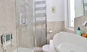 The master bedroom has fitted wardrobes along one wall, a window to the side and a modern en-suite comprising a walk-in shower cubicle, vanity wash hand basin, WC, heated towel rail and a window to the side.