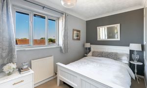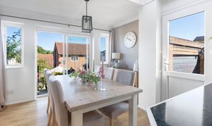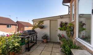 The property is ideally situated within walking distance to the wide range of amenities offered within this sought-after village. Positioned at the end of the development with a small and established green to the front. The front garden includes established plants, and a driveway alongside the property provides off-road parking for three vehicles, leading to the single brick garage with power connected and a personal door to the garden. A gated side access leads through to the well-maintained garden, which features private paved patio area, ideal for outdoor dining, and steps lead down to a further paved area and well-stocked borders and a timber shed.