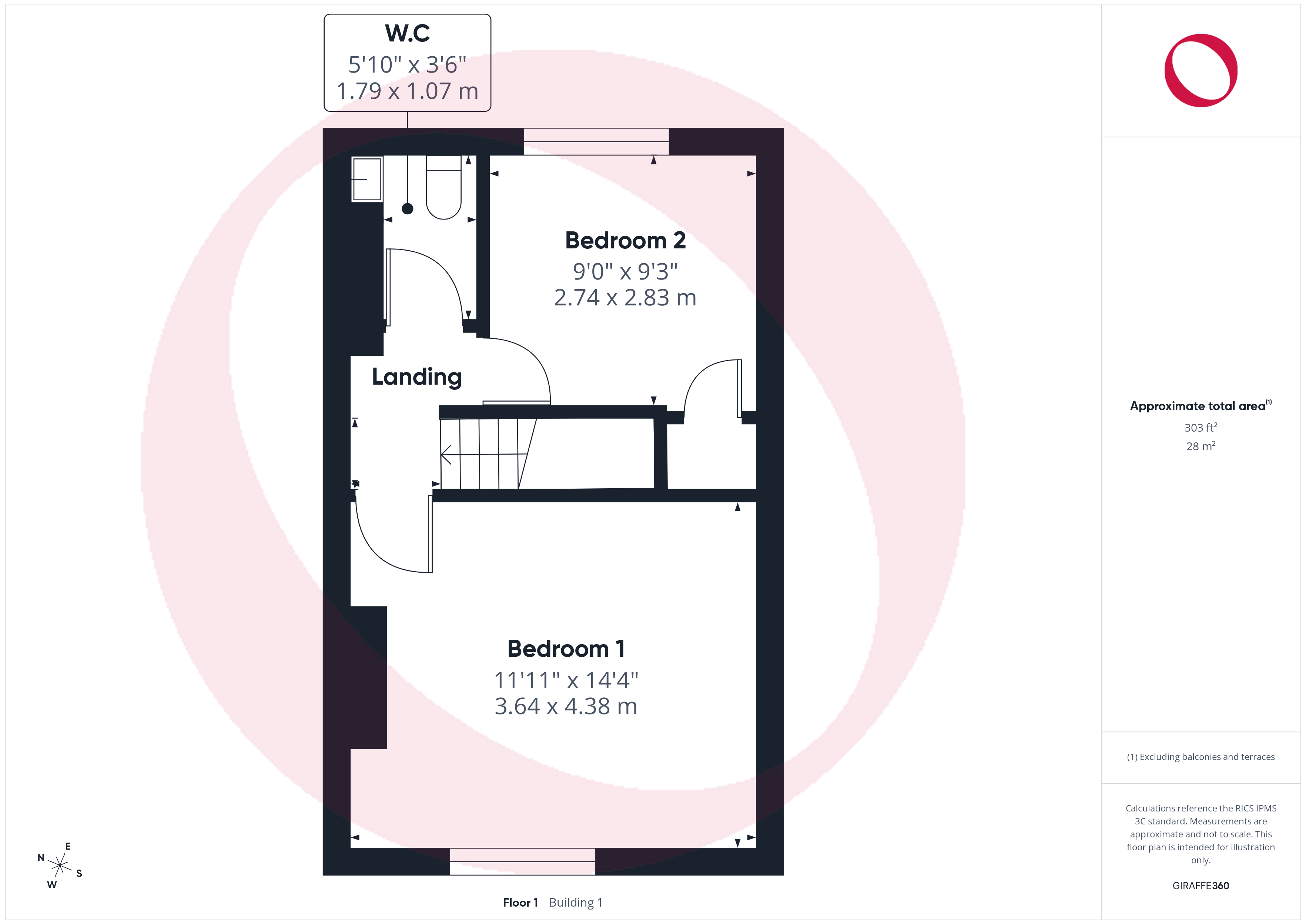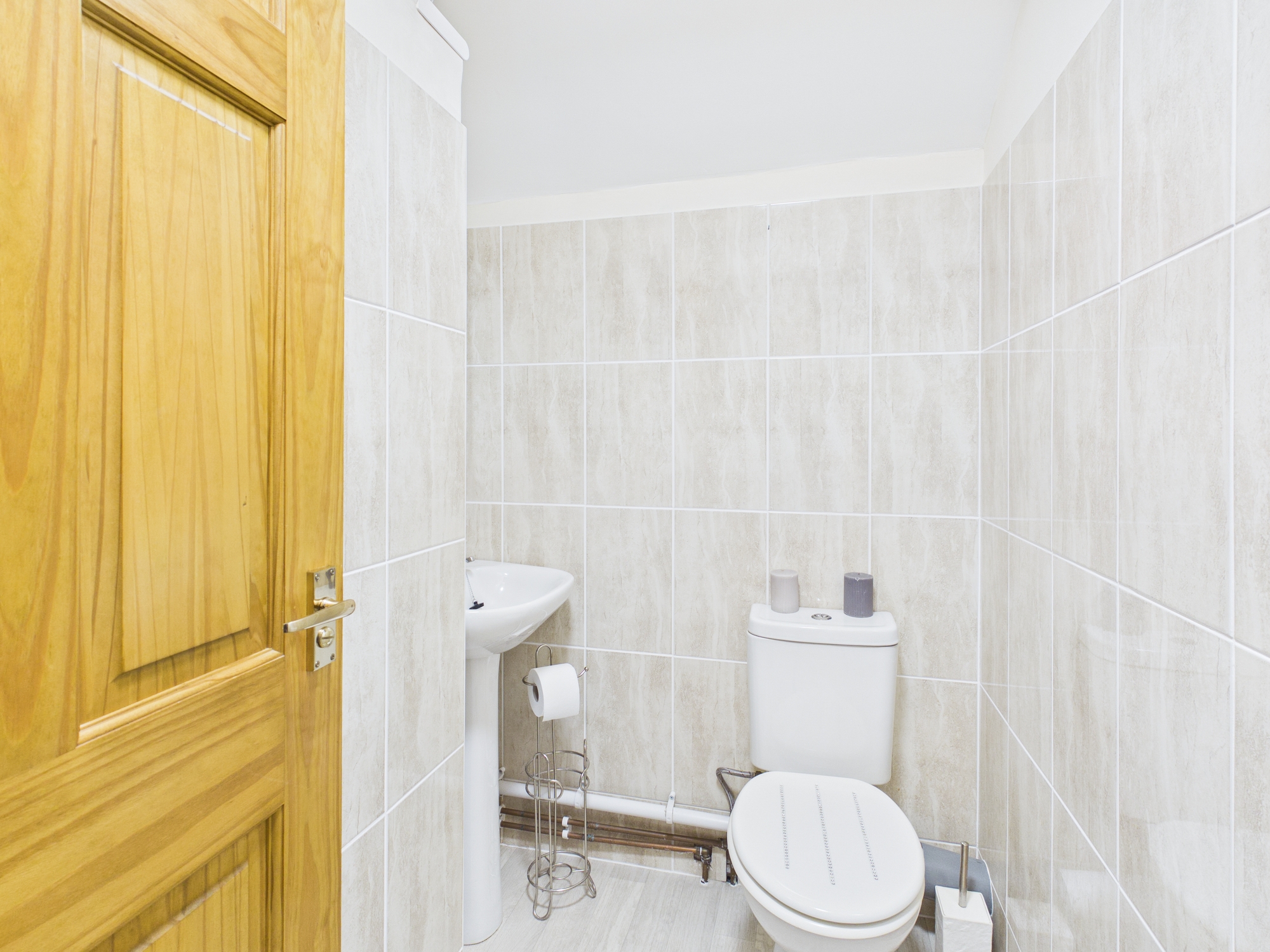 Upstairs the landing connects to the two bedrooms and the upstairs W.C. Bedroom one also has a built-in cupboard housing the gas-fired combination boiler. Access to the partly boarded loft is via the landing.