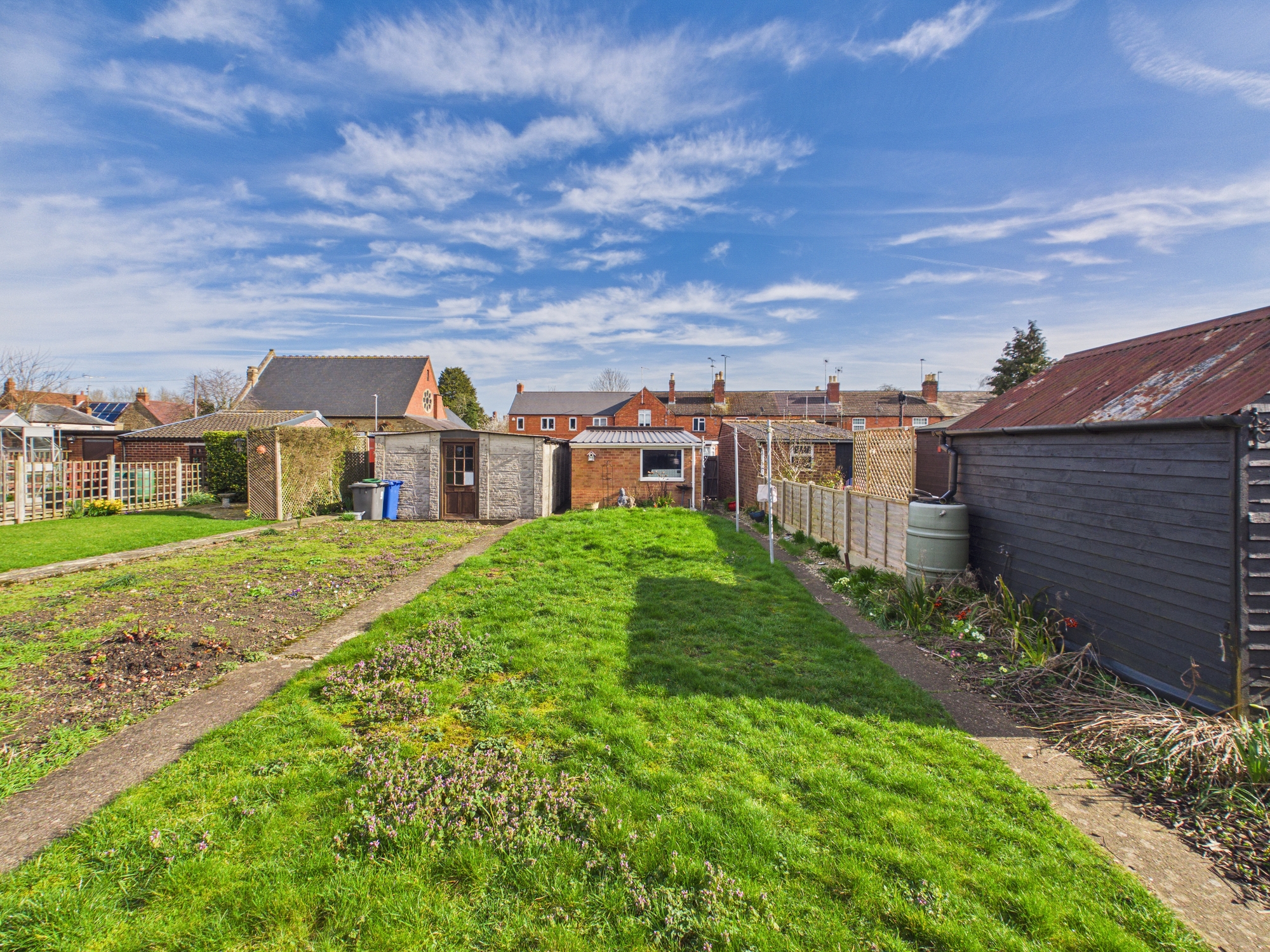 The rear garden is open, laid to lawn and has a pathway leading to the garage and rear access.