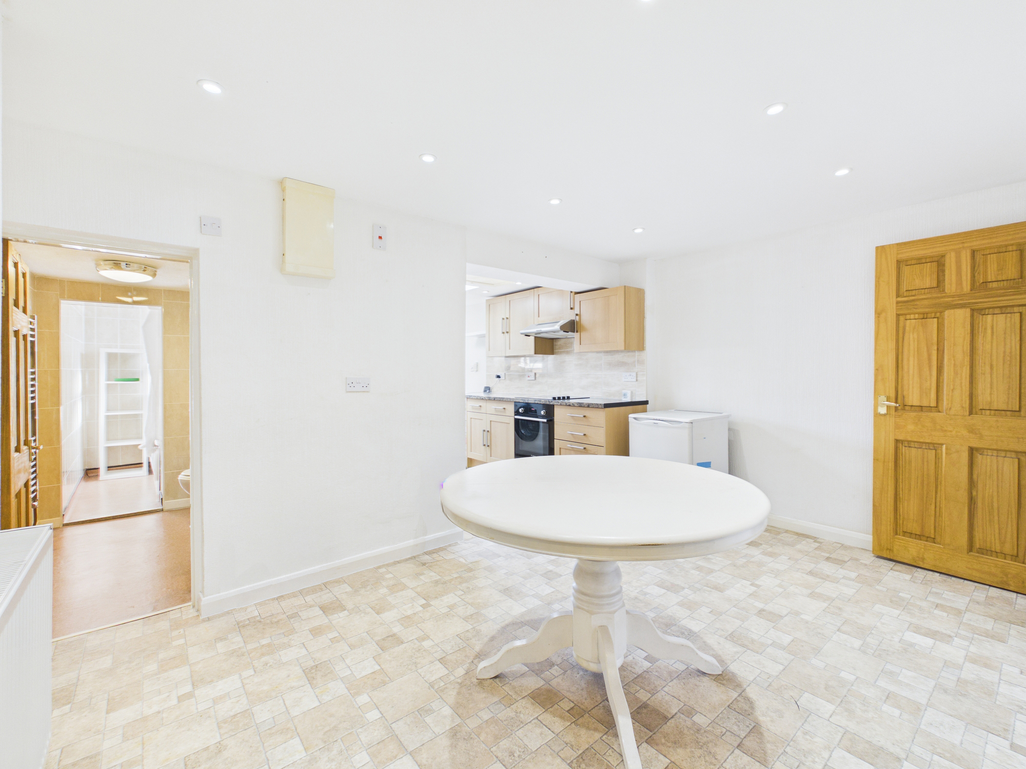 Entered via the front porch, the sitting room has a free standing electric fireplace, a small hall has stairs to the first floor with the dining room into kitchen beyond. Open plan to the dining room and with a glazed door into the rear garden, the kitchen is fitted with a range of units, a single oven with electric hob and extractor. Space is also provided for a fridge/freezer and washing machine. Completing the ground floor is the bathroom, fitted with a bath with shower over, wash basin and a W.C.