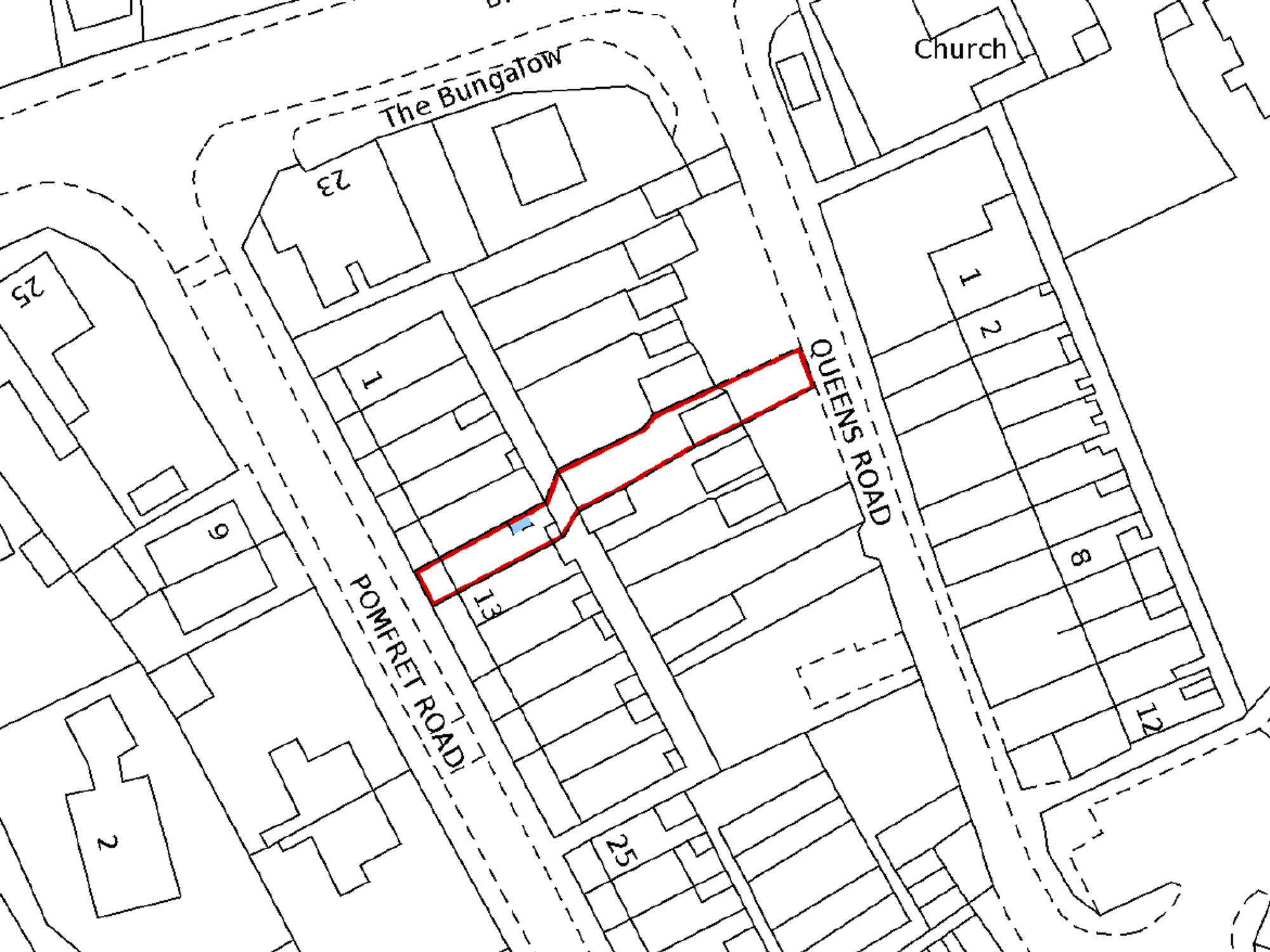 Situated at the bottom of the garden and accessed from Queens Road. Up and over door. Window to the rear.