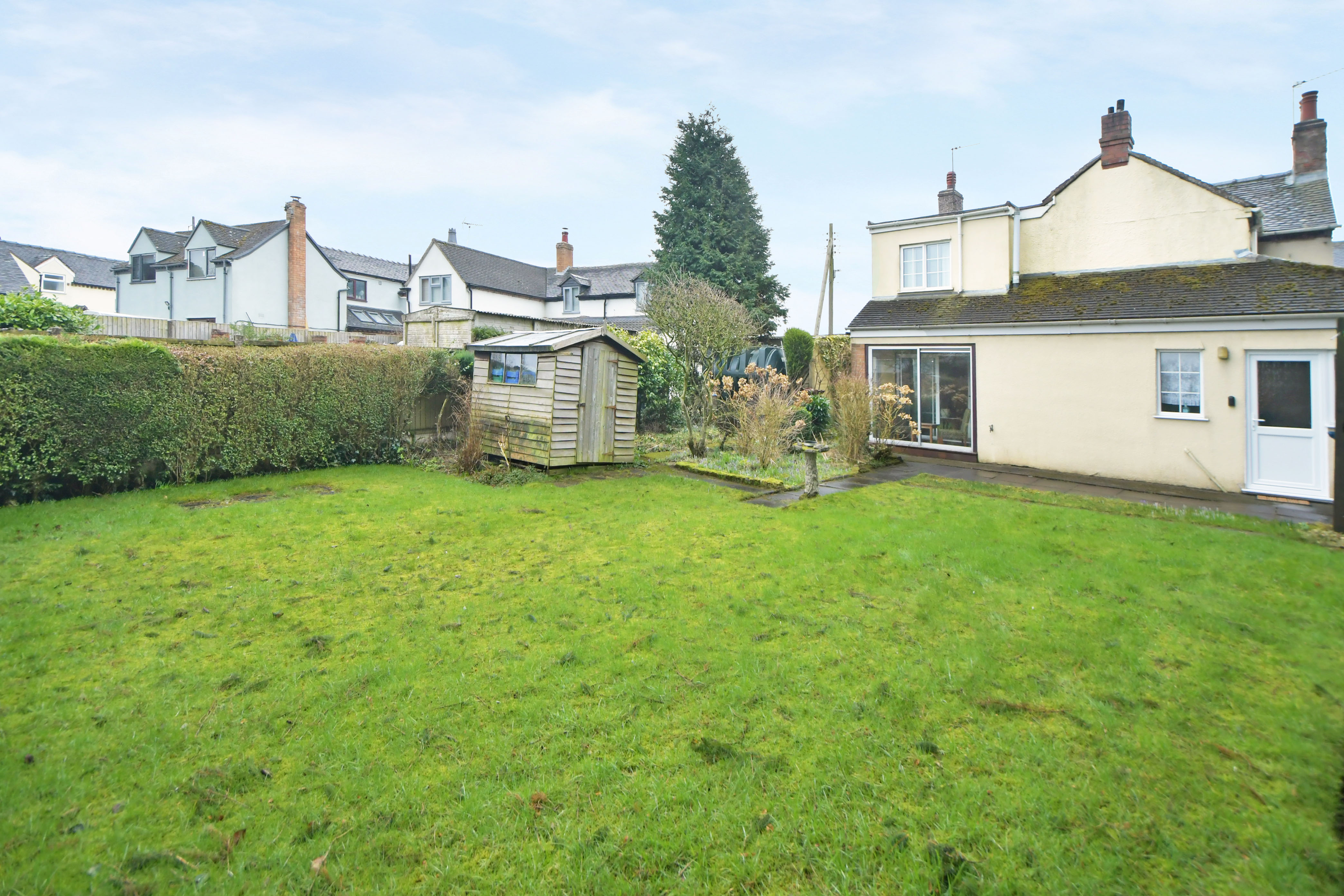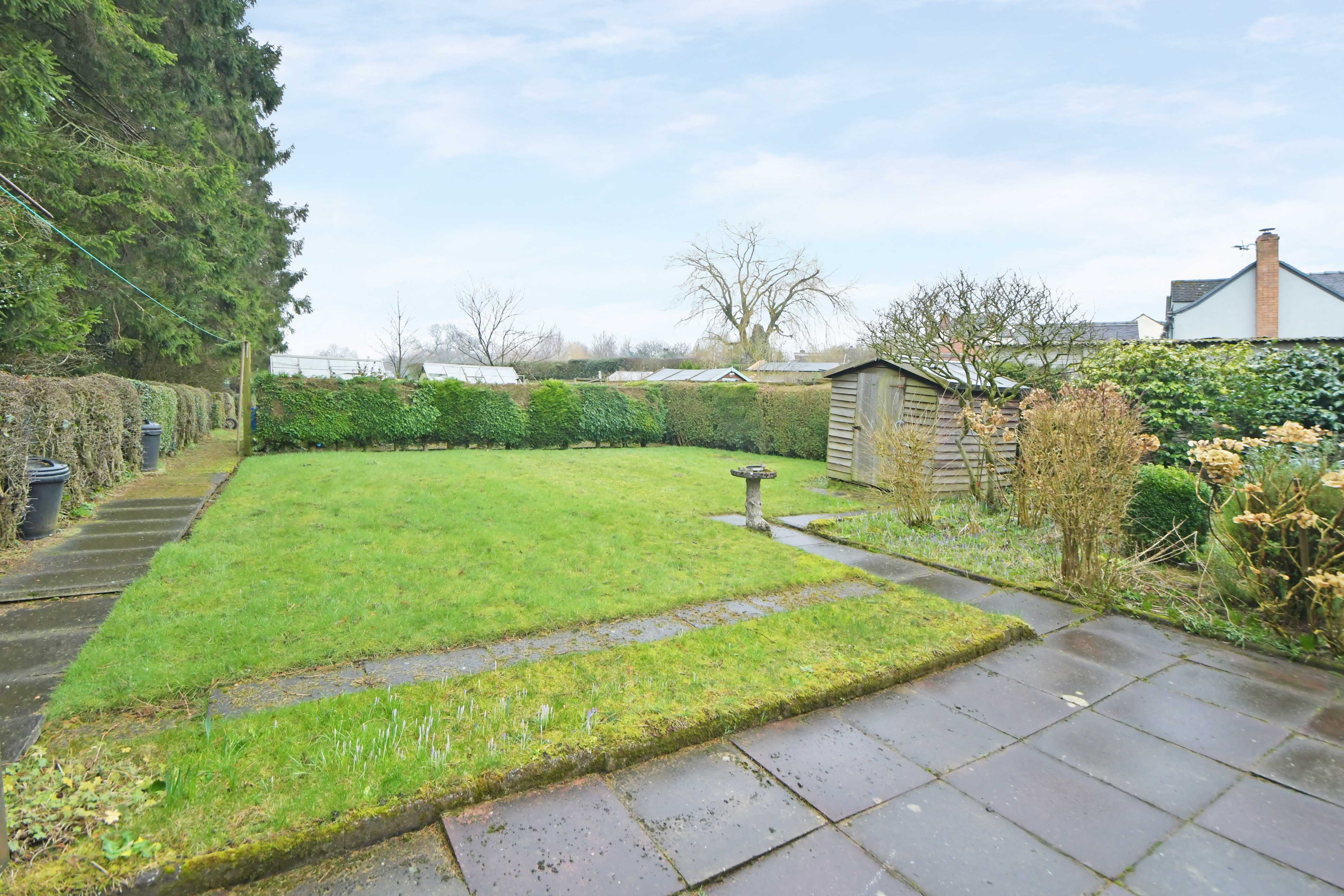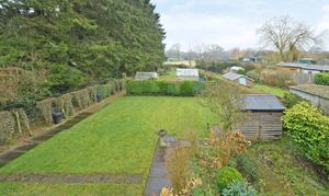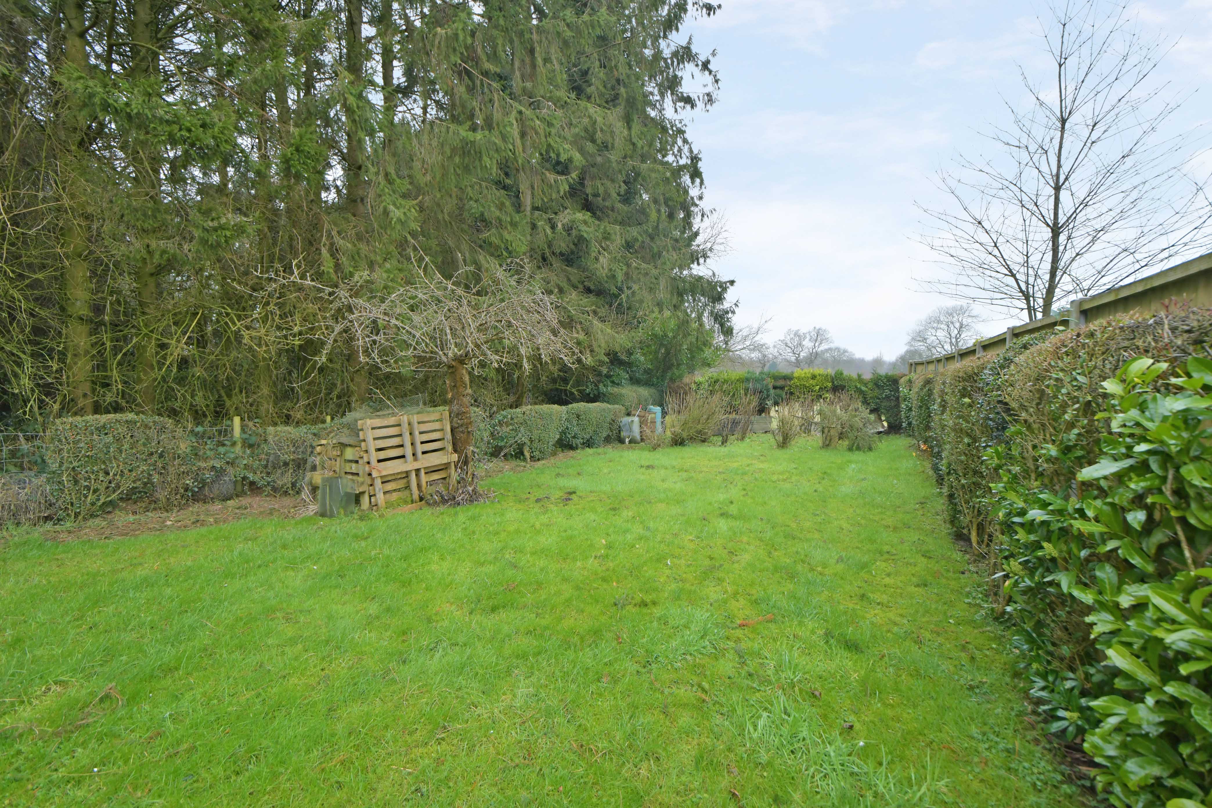 The property has a surprisingly large rear garden, flanked by mature hedging and trees, with views to the rear over farmland. The size of the plot provides potential (subject to securing the relevant permissions) to relocate/ increase the size of the garage and to provide additional driveway space.