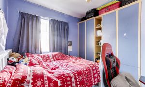 Dimensions: 5.46 x 2.95 (17'10" x 9'8"). The main bedroom has carpeted flooring, a radiator and a UPVC double-glazed window to the front elevation.