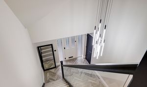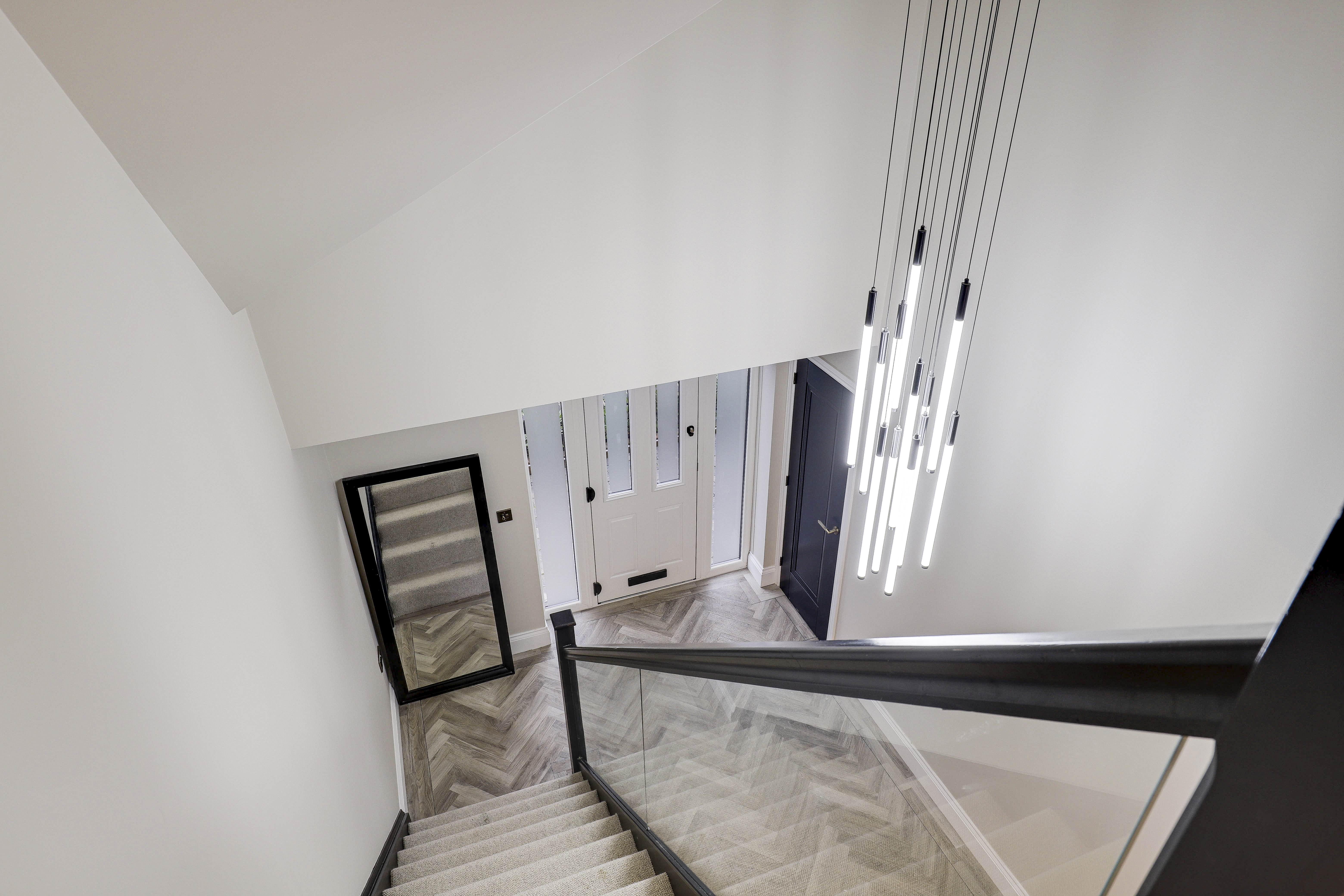 The landing has carpeted flooring with underfloor heating, dimmable recessed spotlights and provides access to the first floor accommodation.