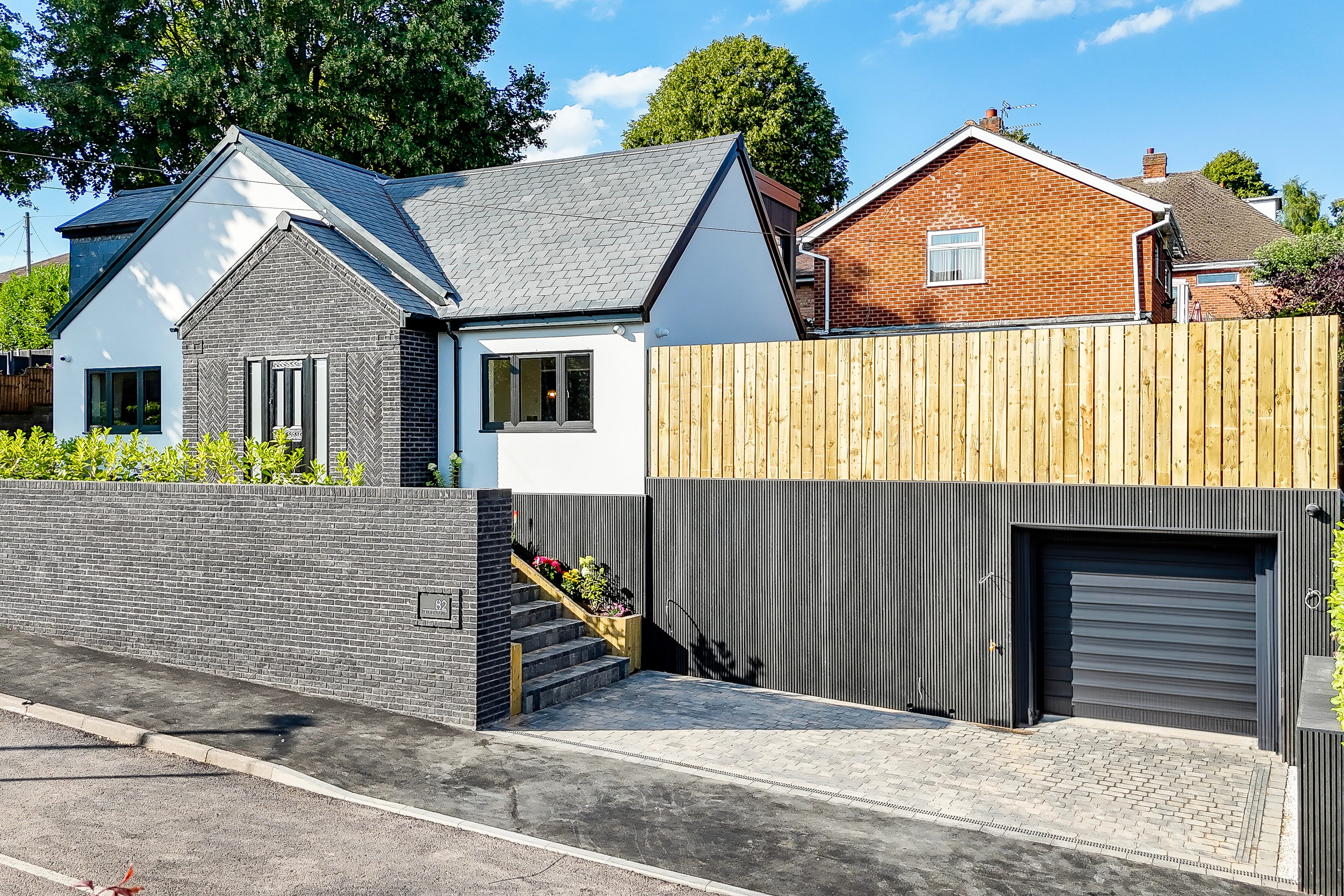 Outside to the front of the property is a block paved driveway with access into the garage, external power points, courtesy lighting and a wall mounted electric car charging point. Steps lead up to the front door, bordered by planted beds.