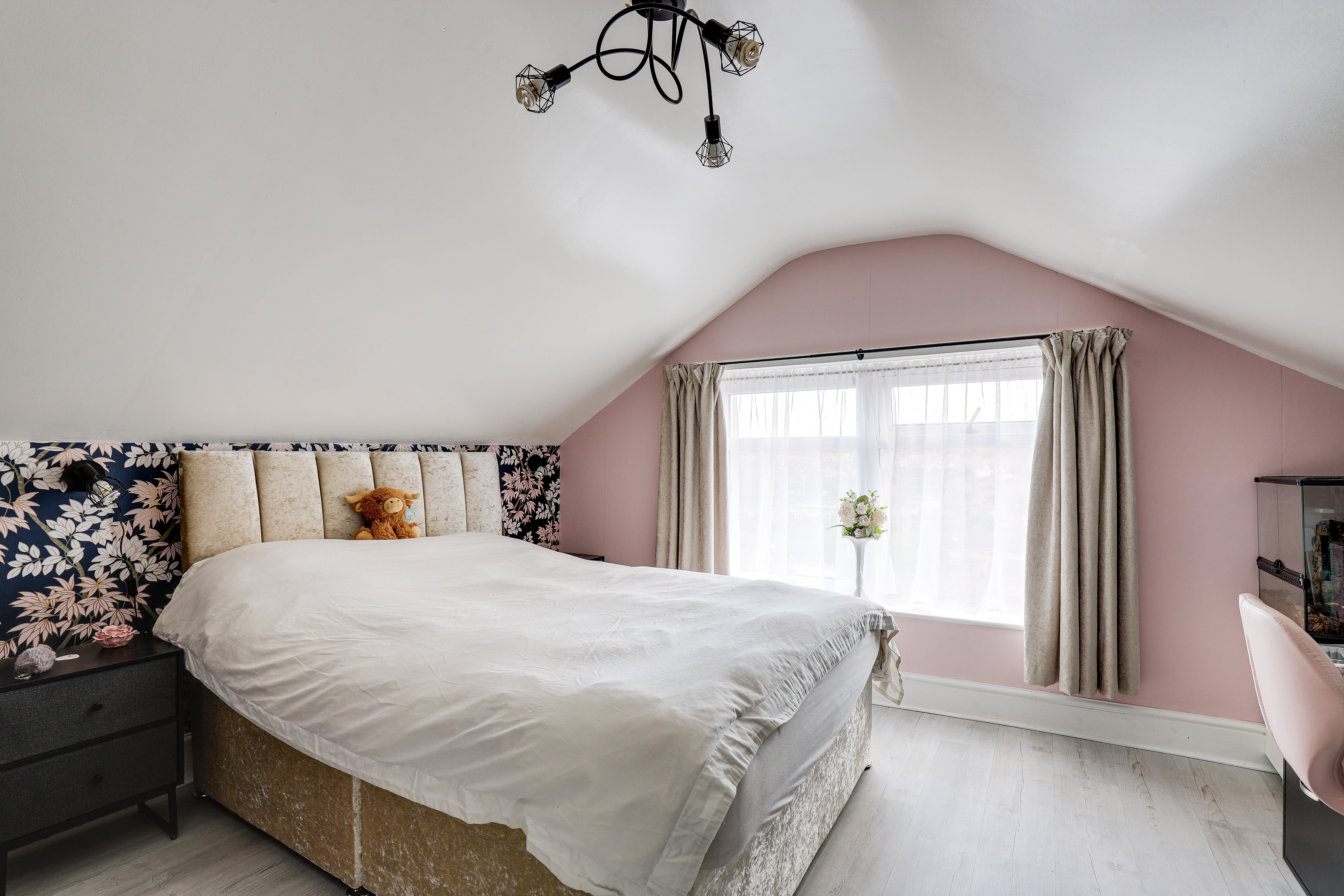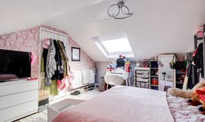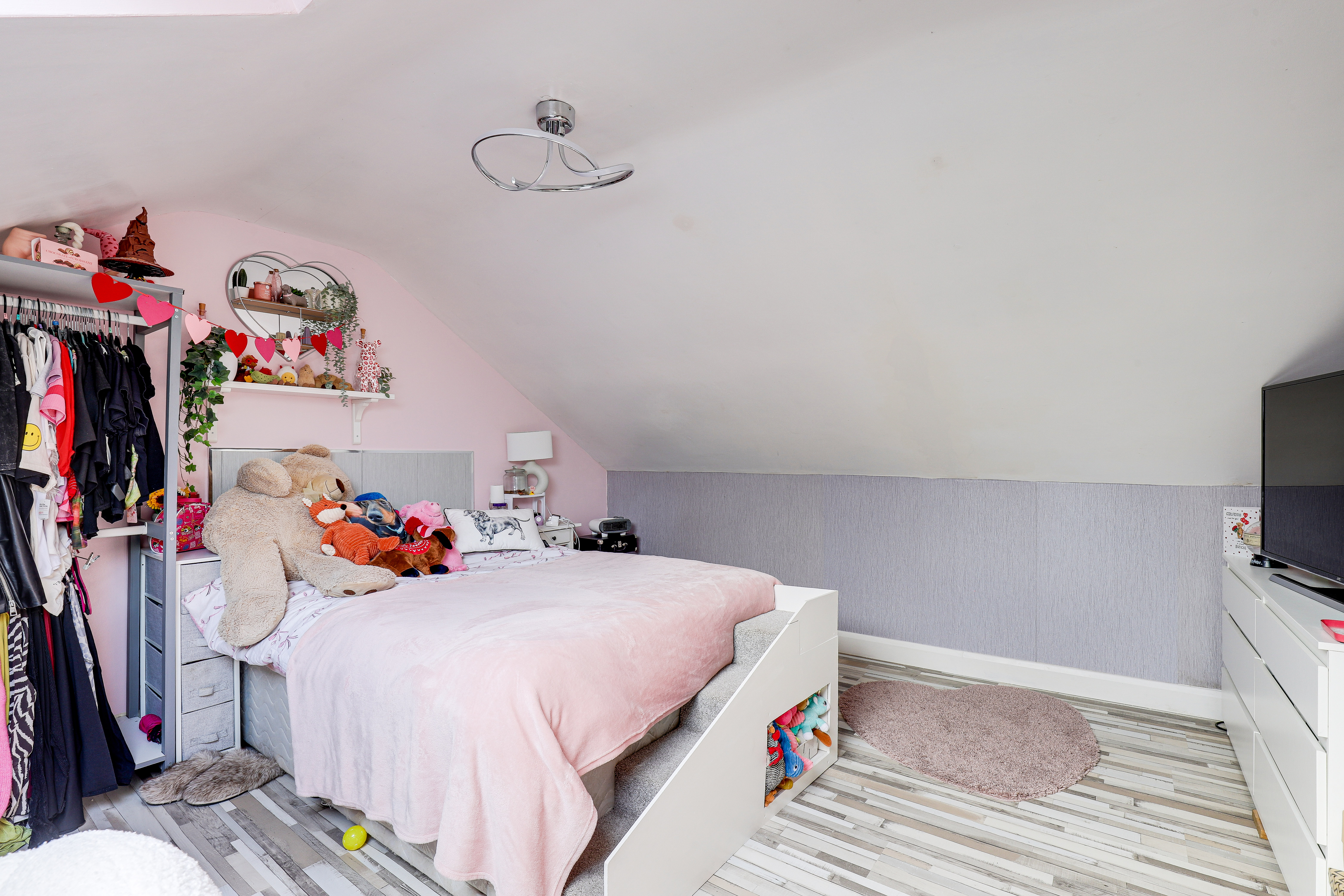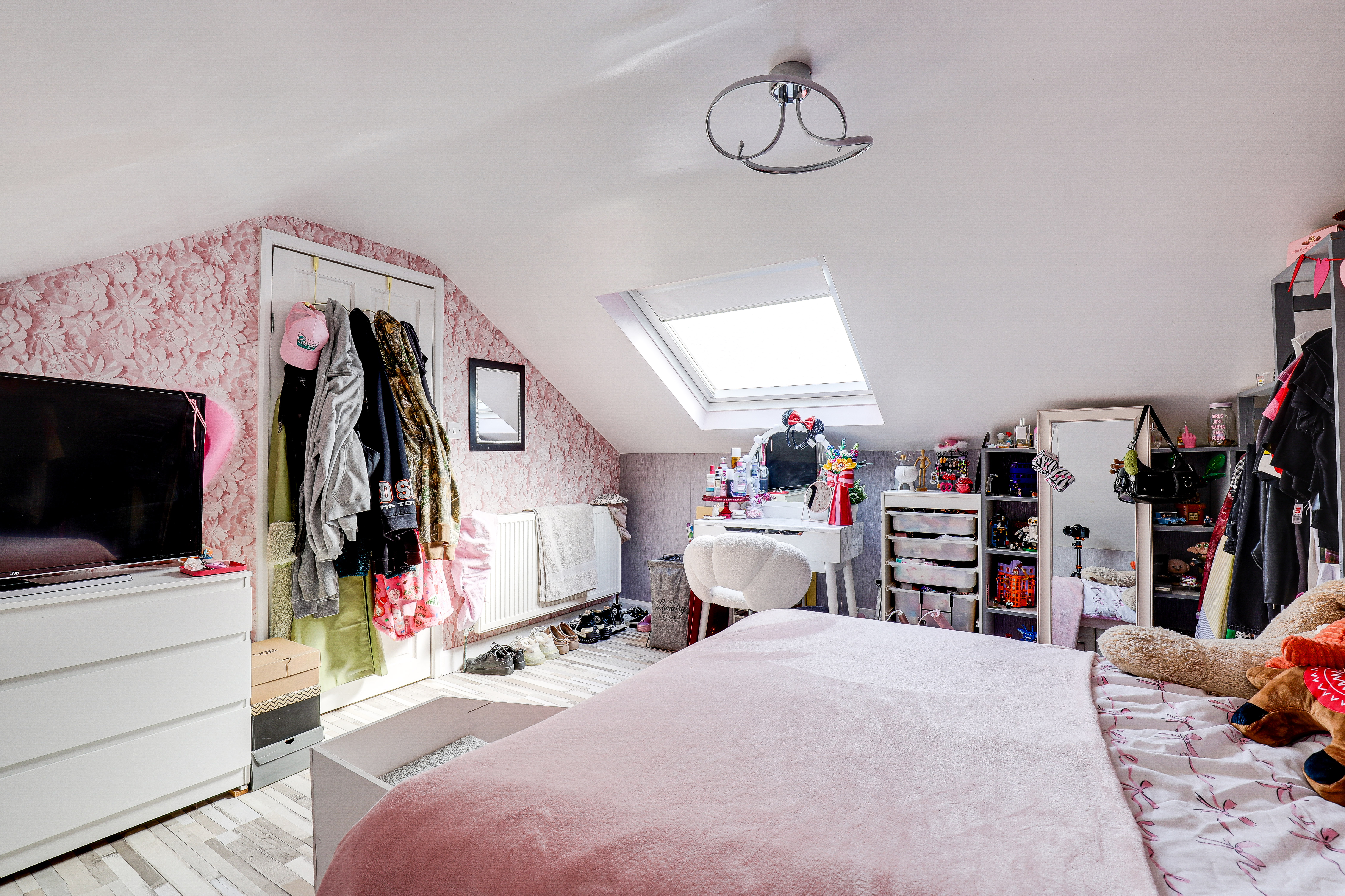 The fourth bedroom has a Velux window, a radiator, and wood-effect flooring.