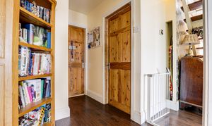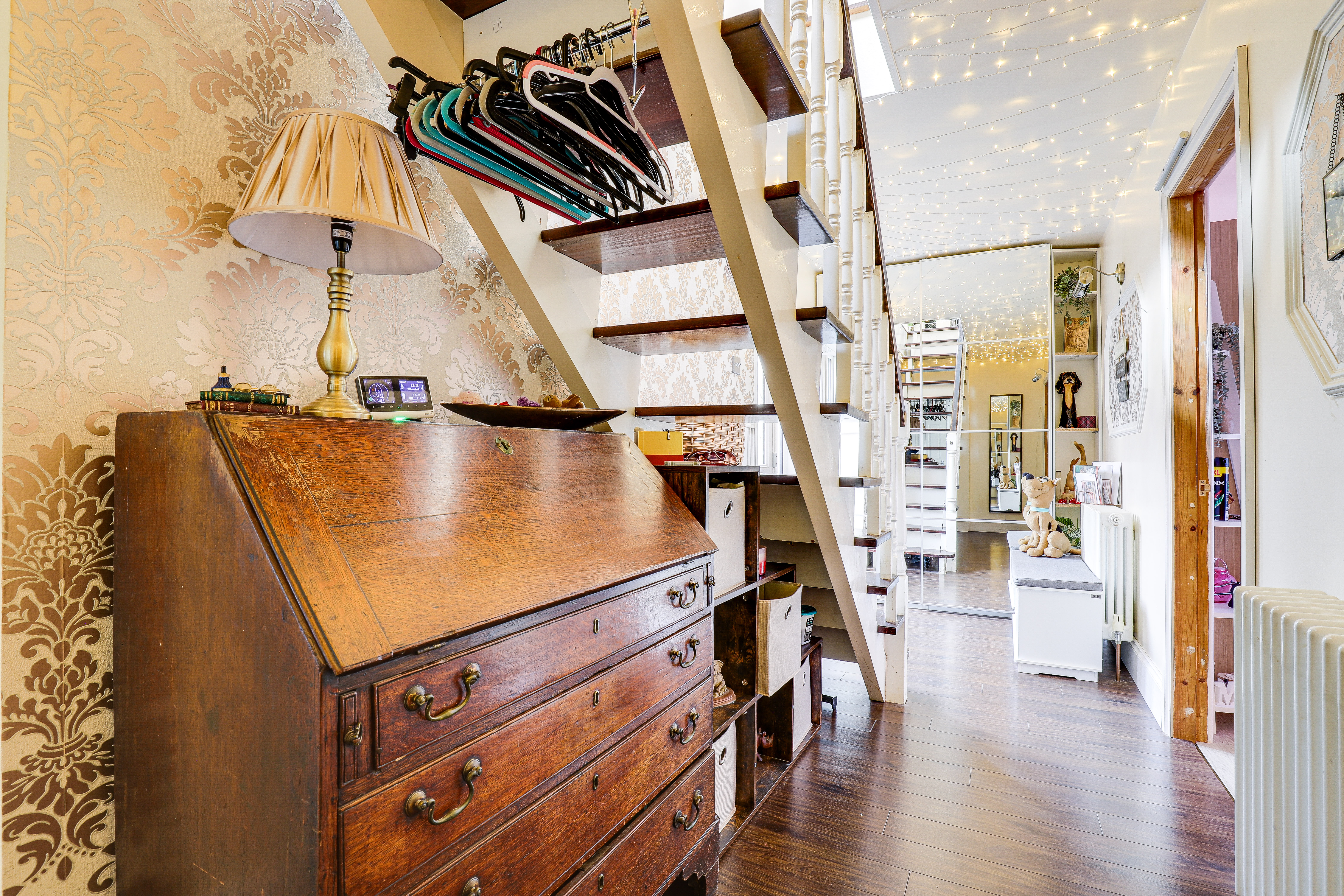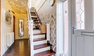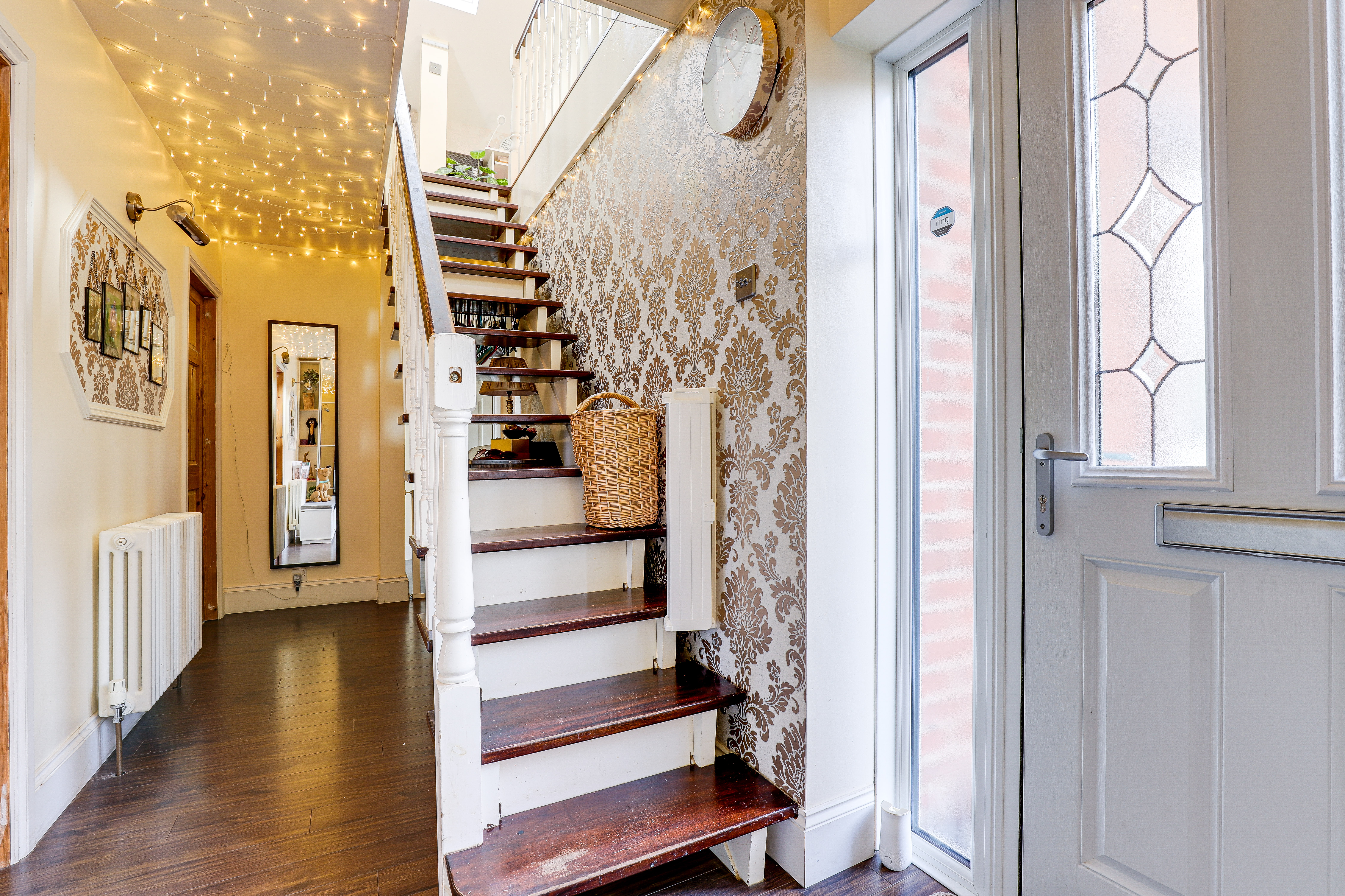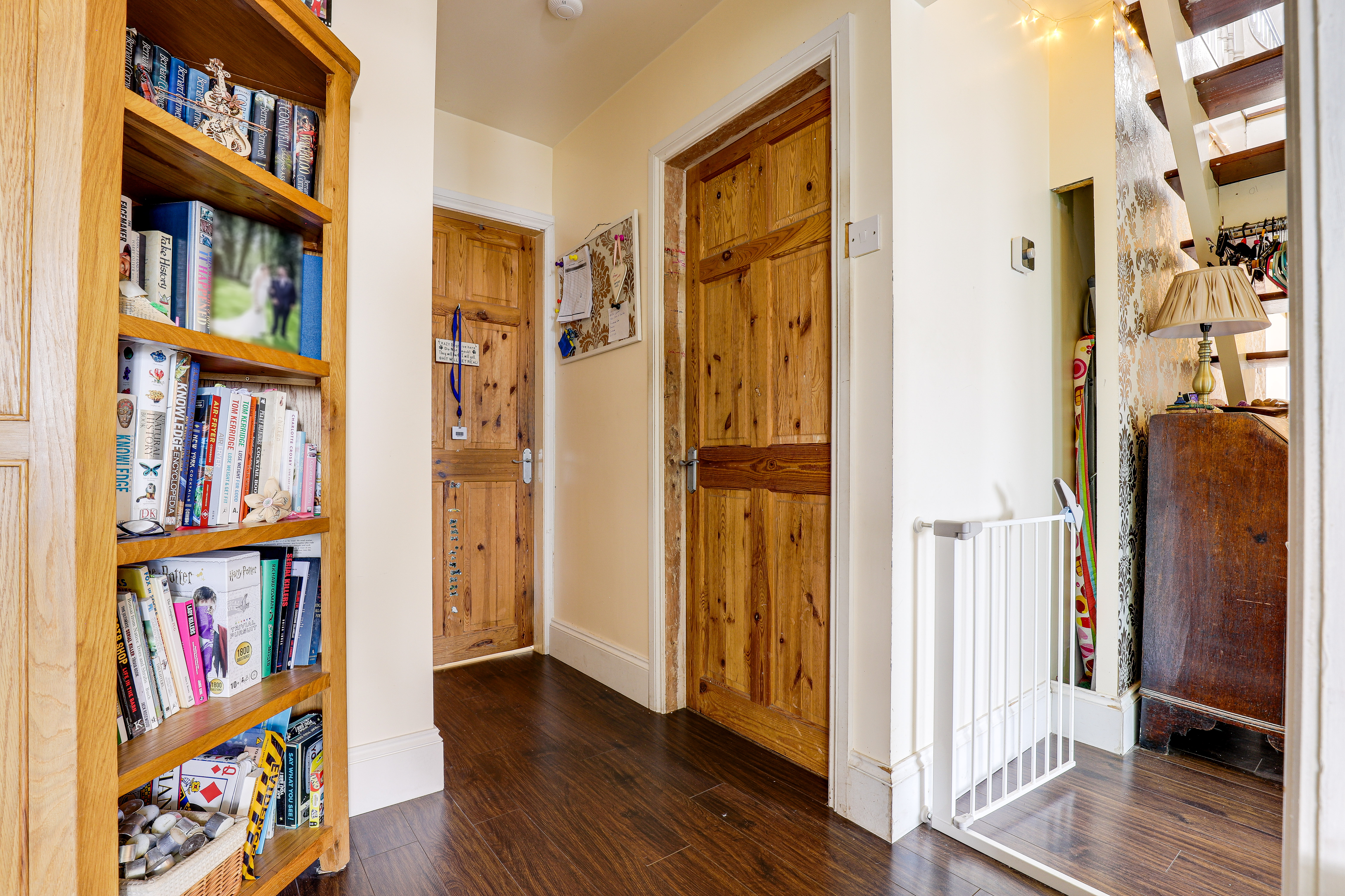 The inner hallway has wood-effect flooring, and provides access to a bedroom, kitchen, utility room, living room and stairs to the lower ground floor.
